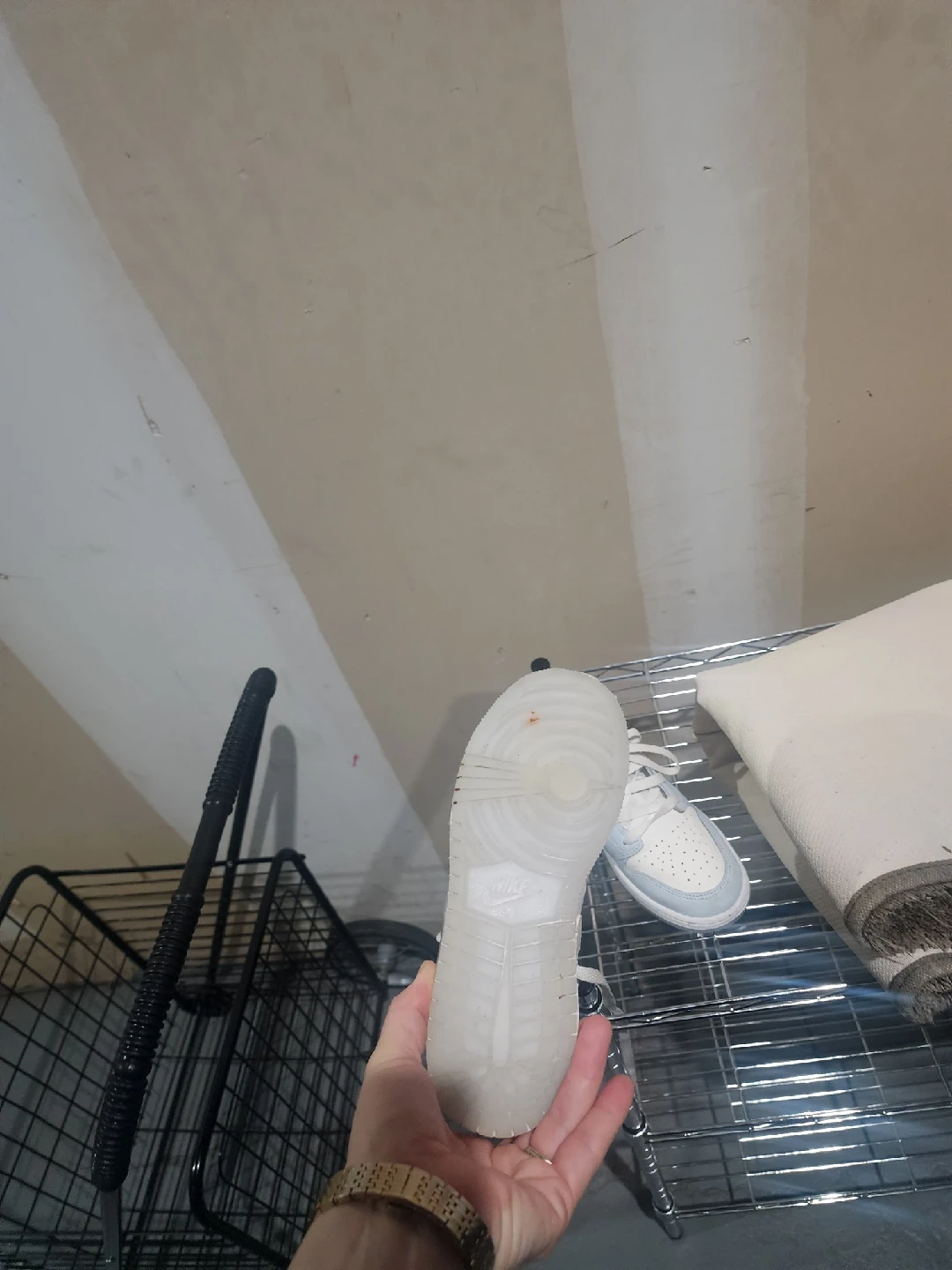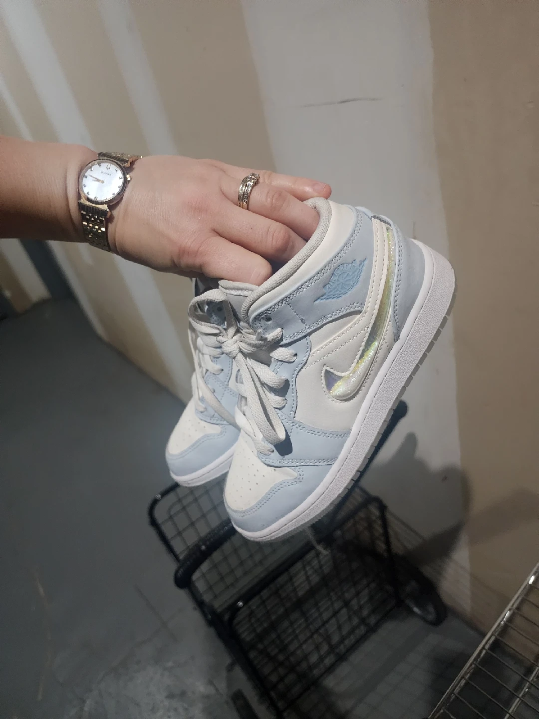 43Selling a pair of Nike Air Jordan 1 Mid sneakers in Ice Blue. They are in great condition and ready for a new home!