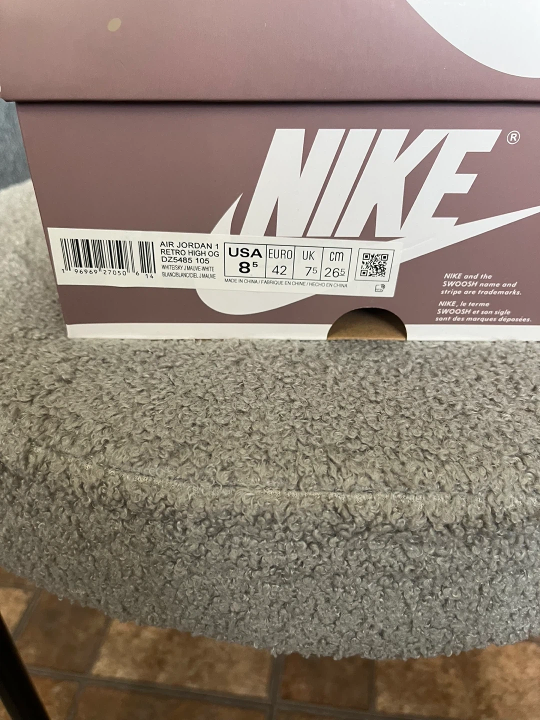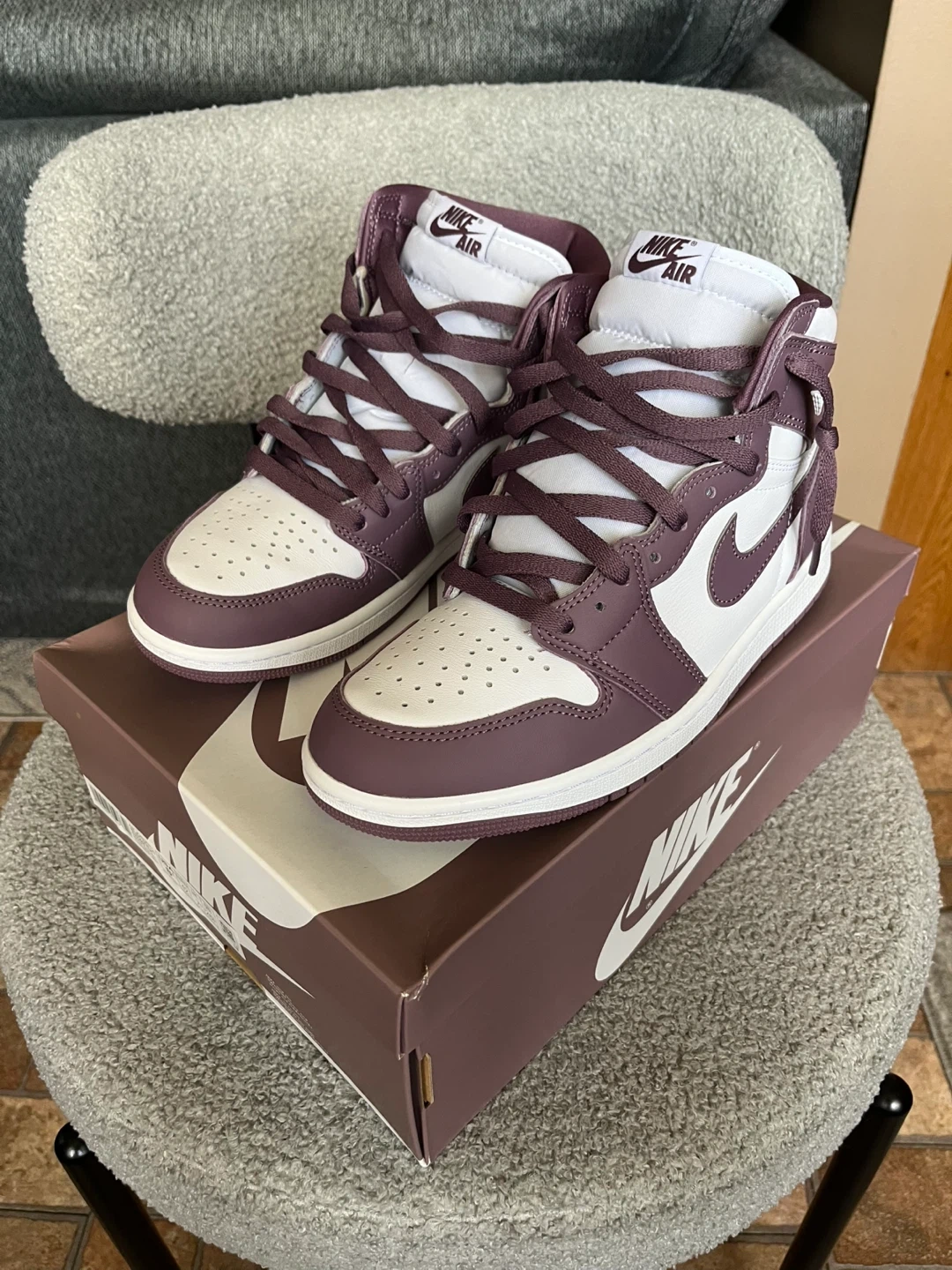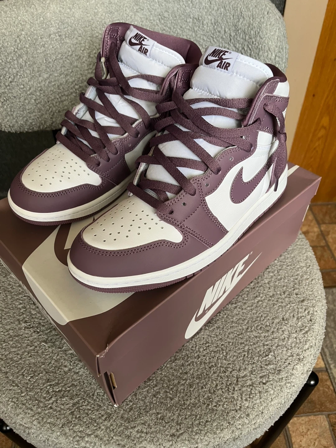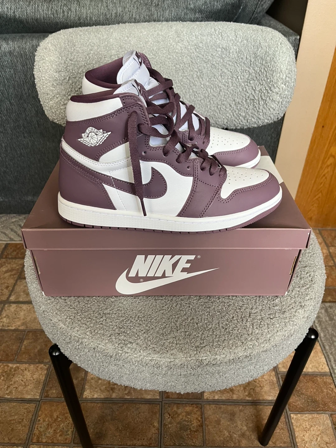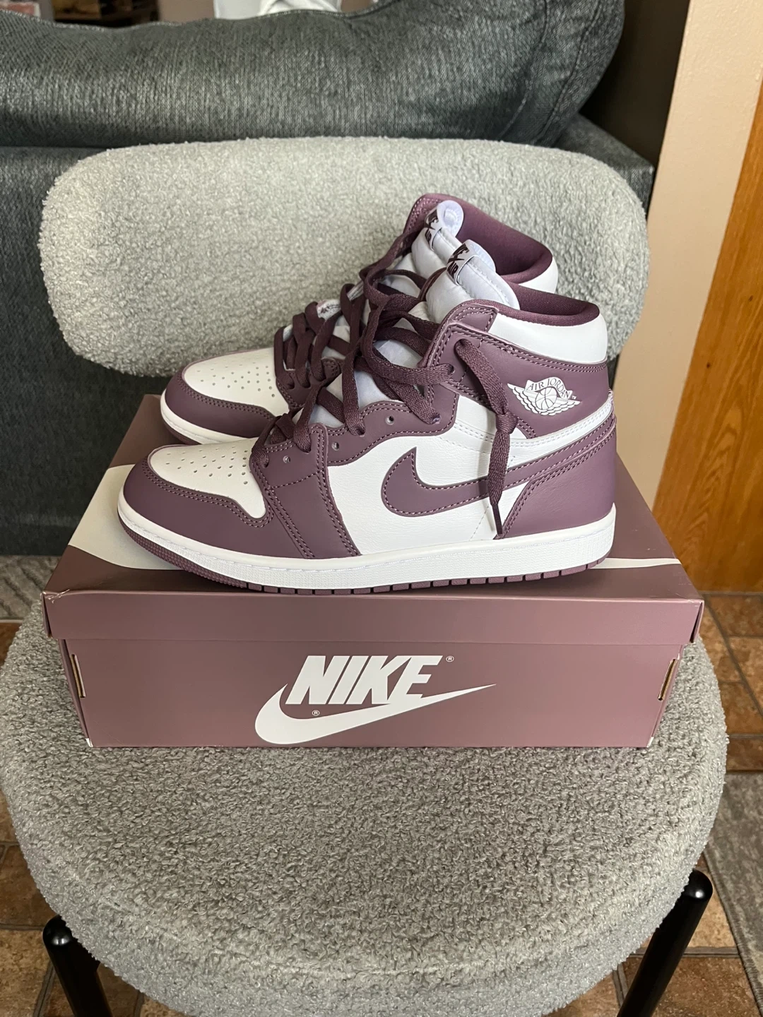 10Selling a pair of Nike Air Jordan 1 Retro High OG in the Mauve colorway, size 8.5. These come with the original box!