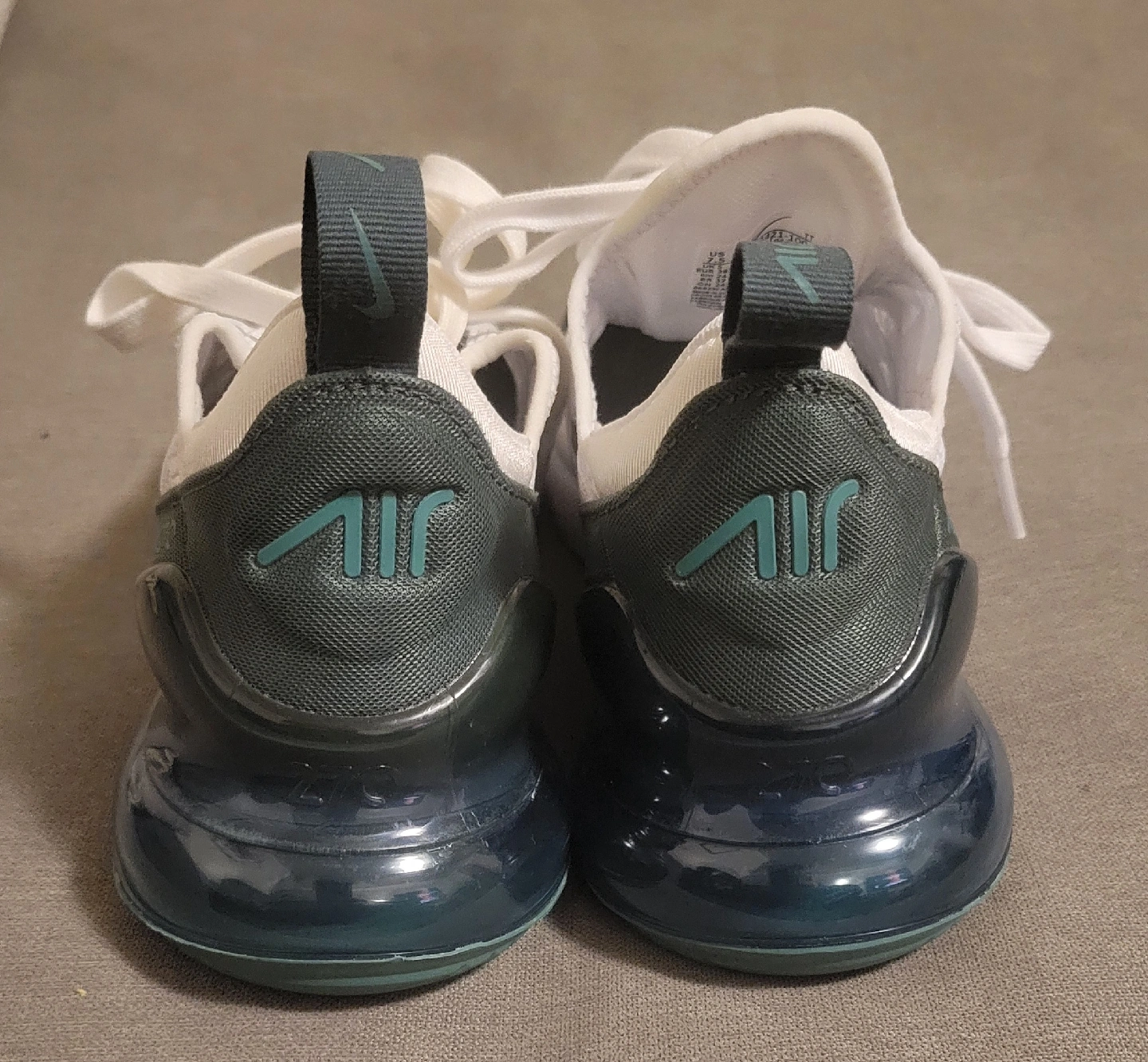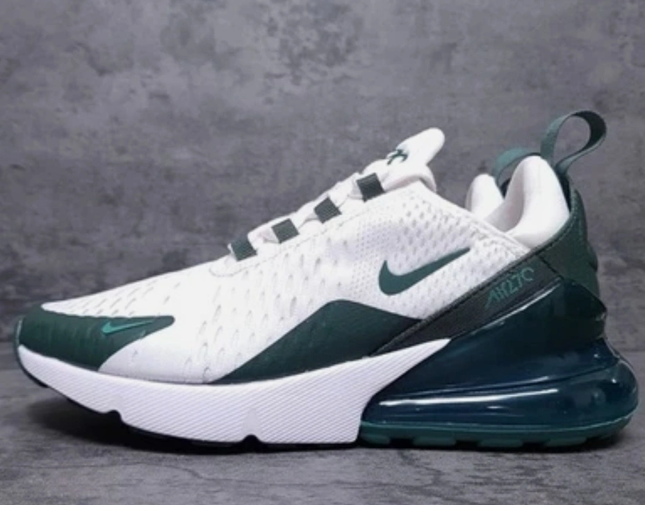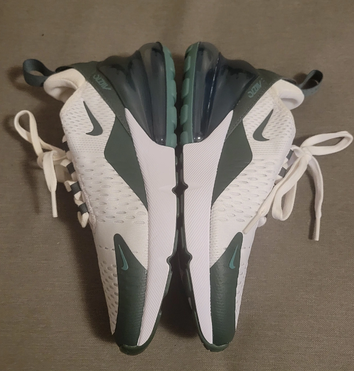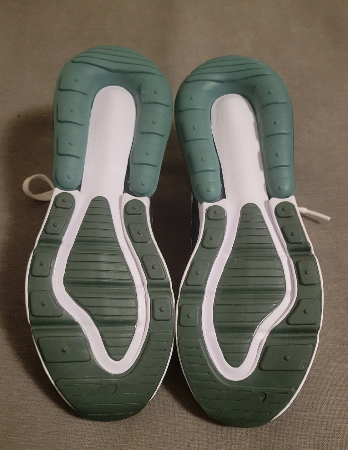 Selling a pair of Nike Air Max 270 sneakers in a clean white and green colorway! The size is US 7.5. They're in great condition and ready for a new home