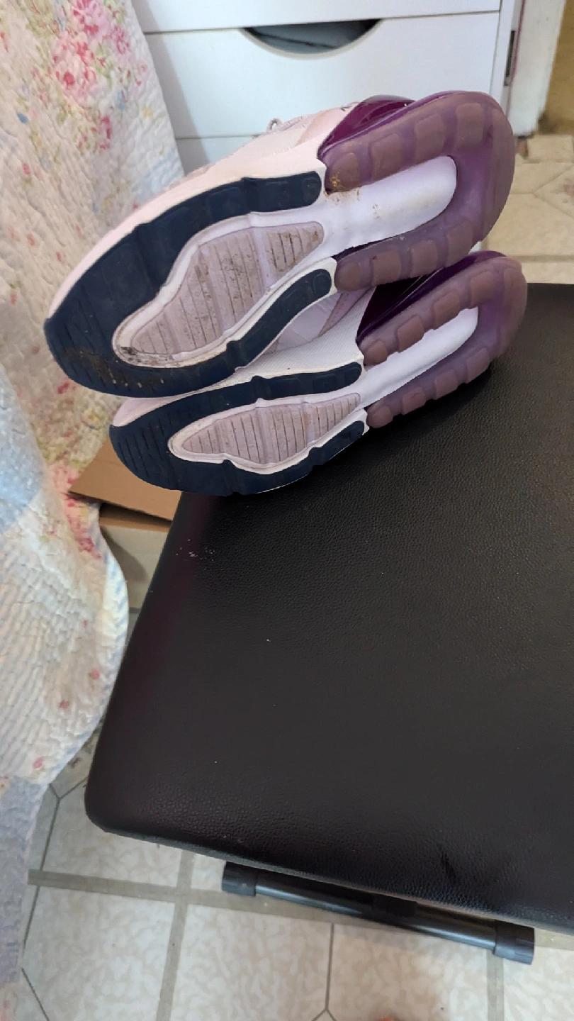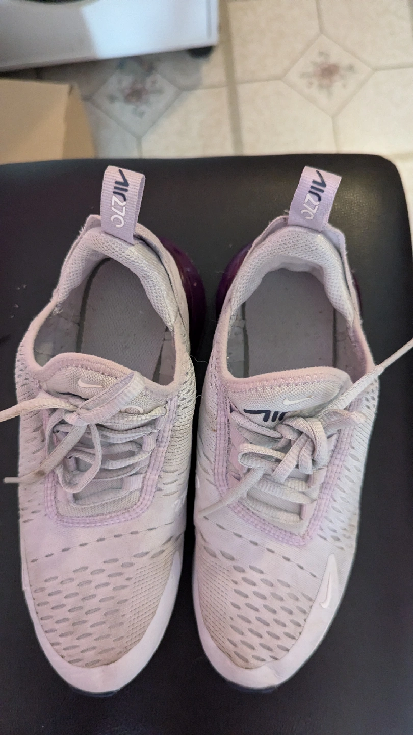 Selling a pair of Nike Air Max 270 in youth size 4Y. They show some signs of wear, but still have lots of life left! The color is a light purple/grey.