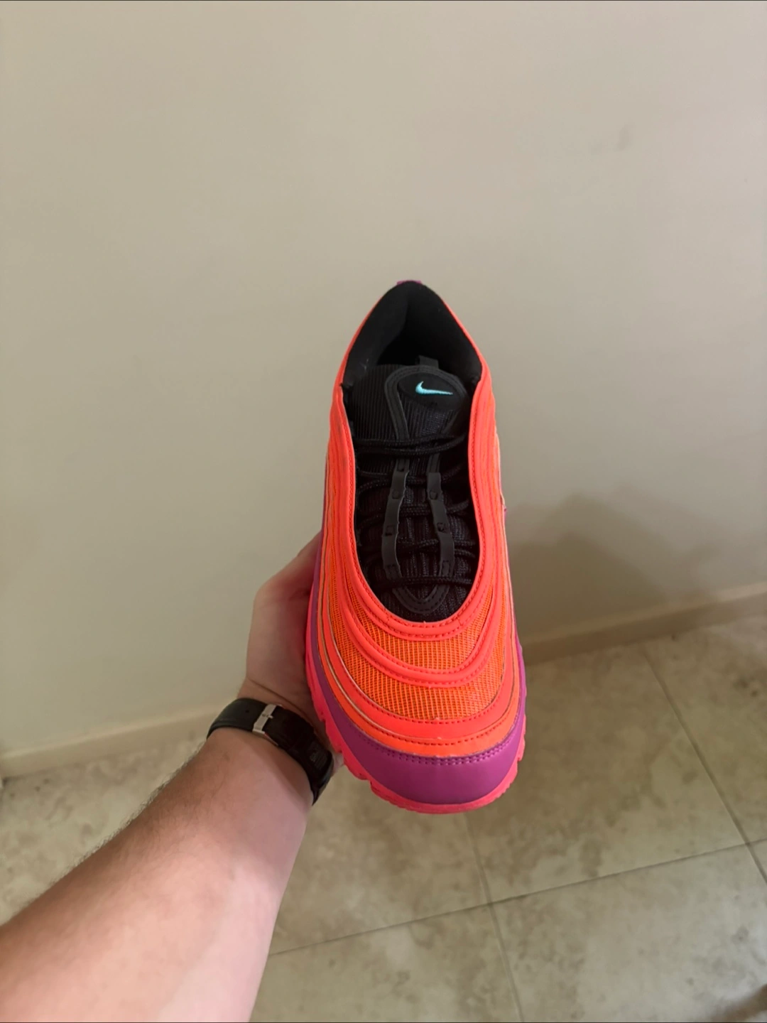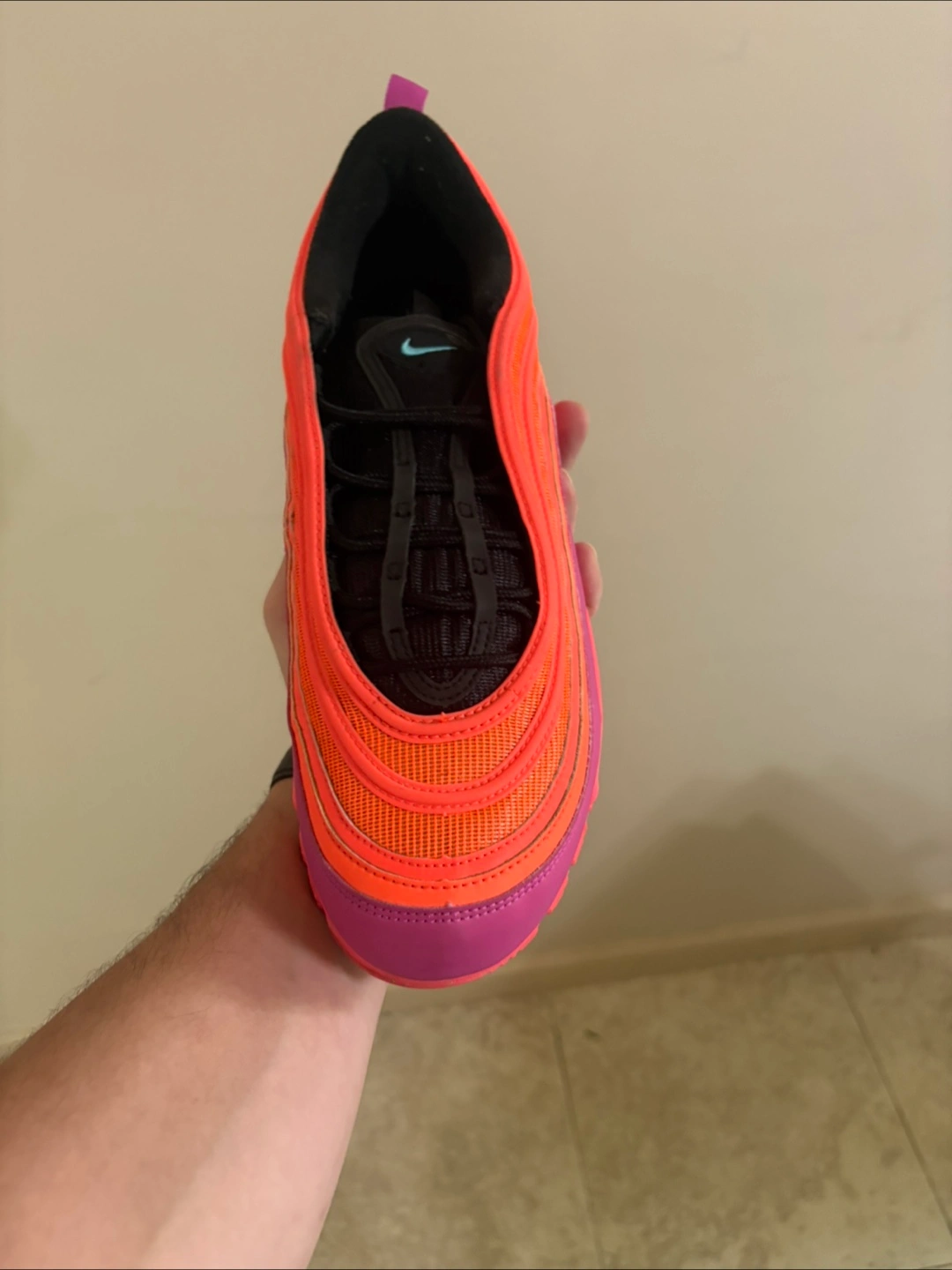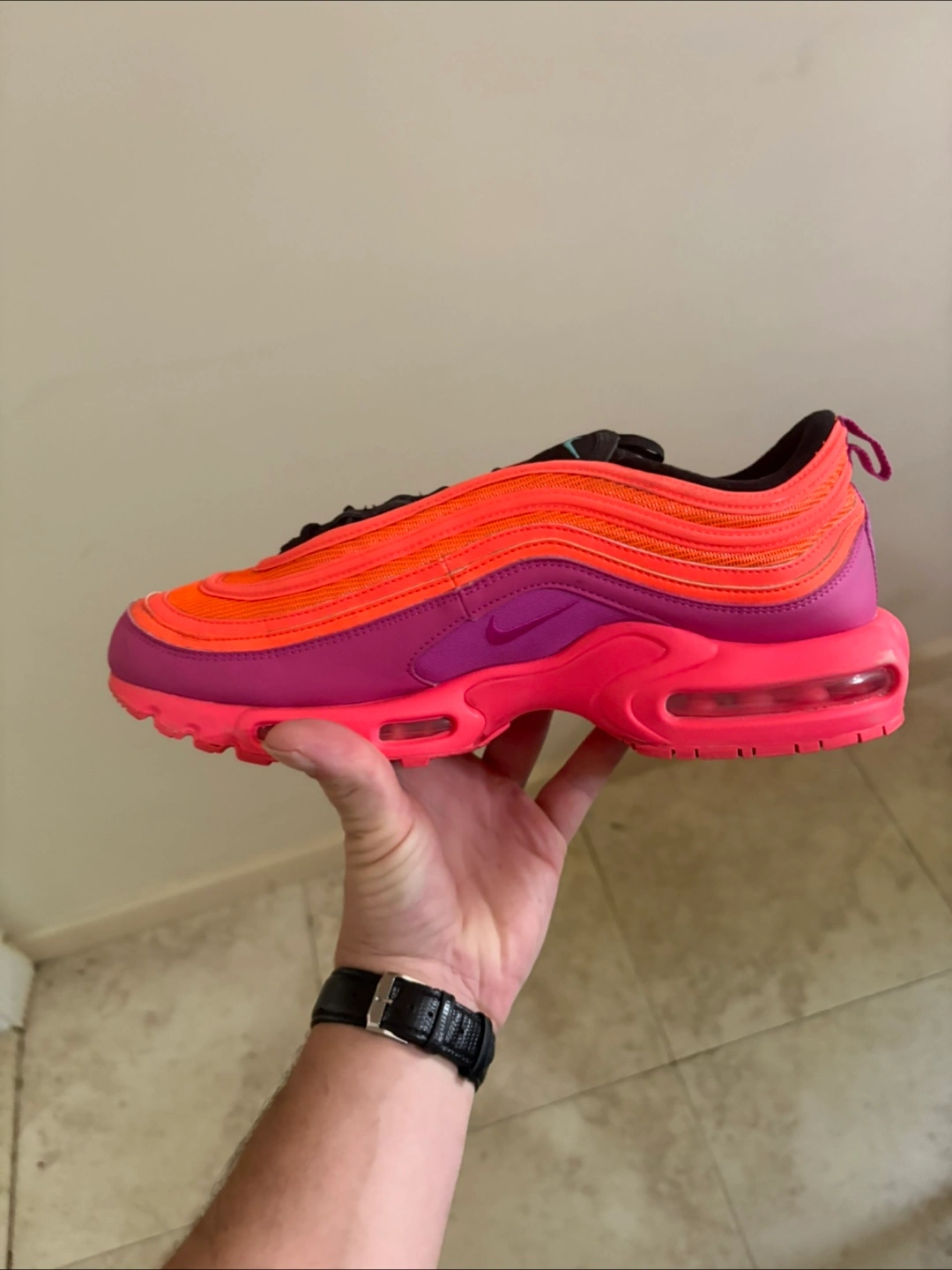 Selling a pair of Nike Air Max 97 TN Hybrid sneakers in a vibrant orange and pink colorway. These shoes are in great condition and ready for a new home! Perfect for adding a pop of color to your wardrobe Used VNDS size 10.5