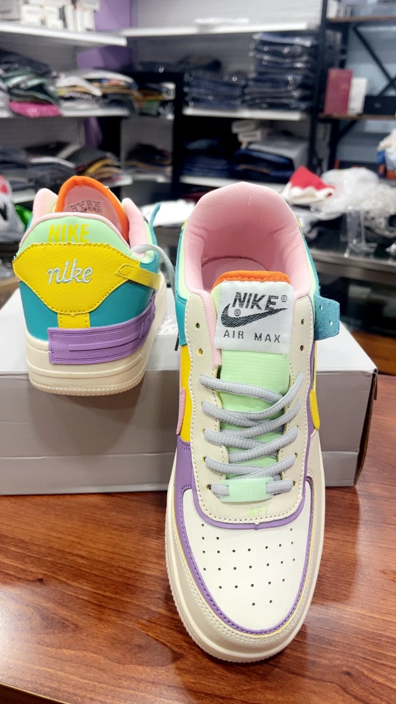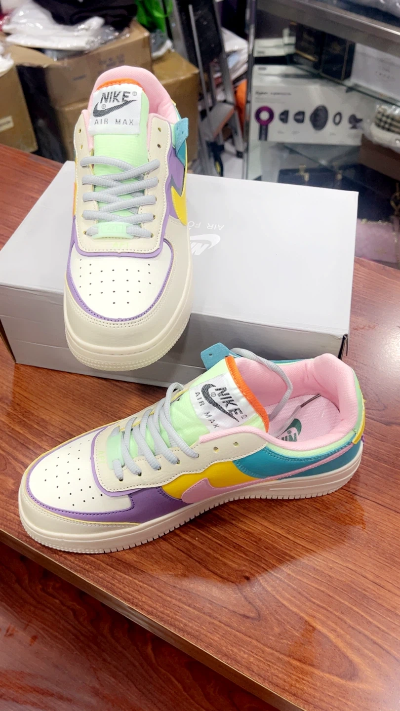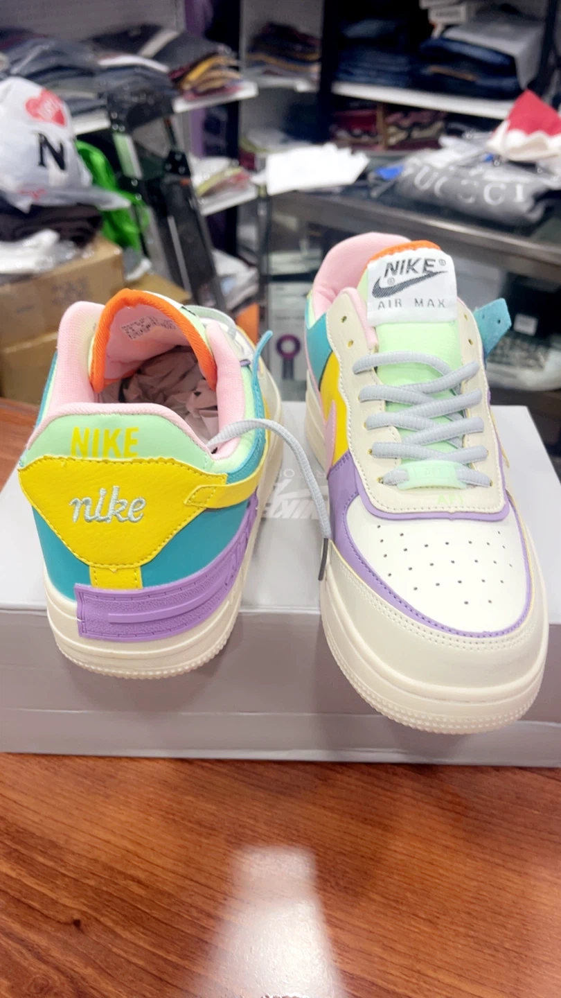 82These Nike Air Max sneakers, They feature a fun and colorful design with a mix of pastel shades. The shoes come with the original box in size 7, 8.5, 9.5