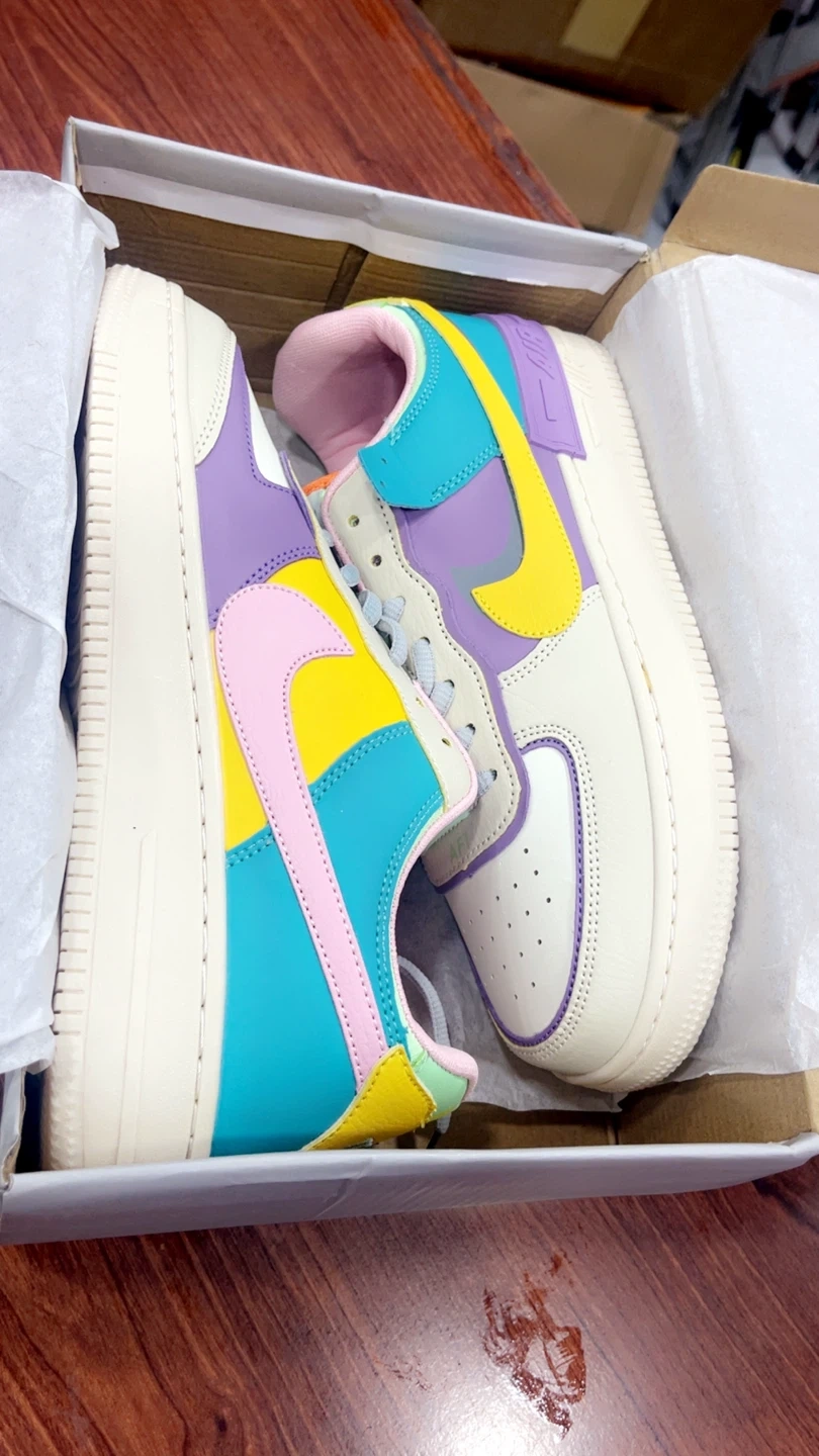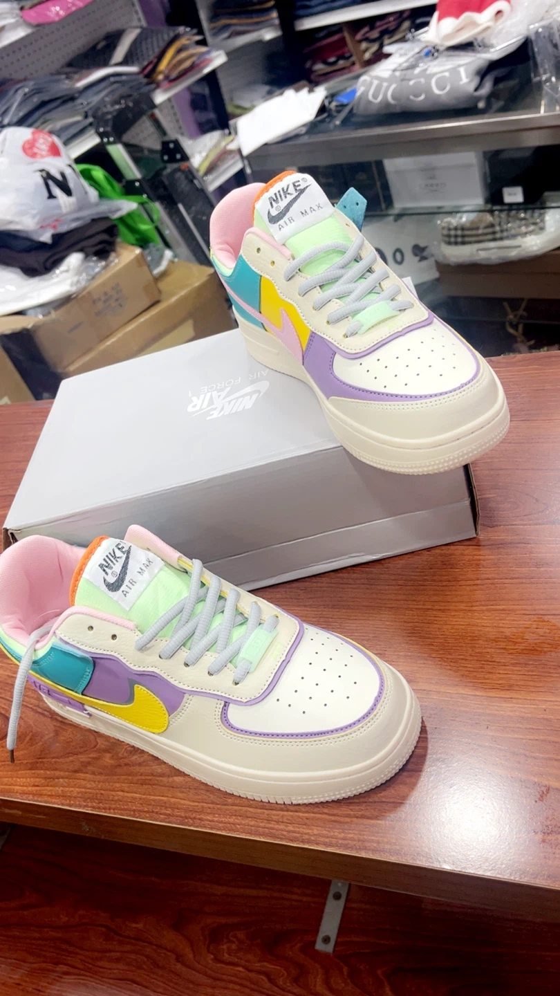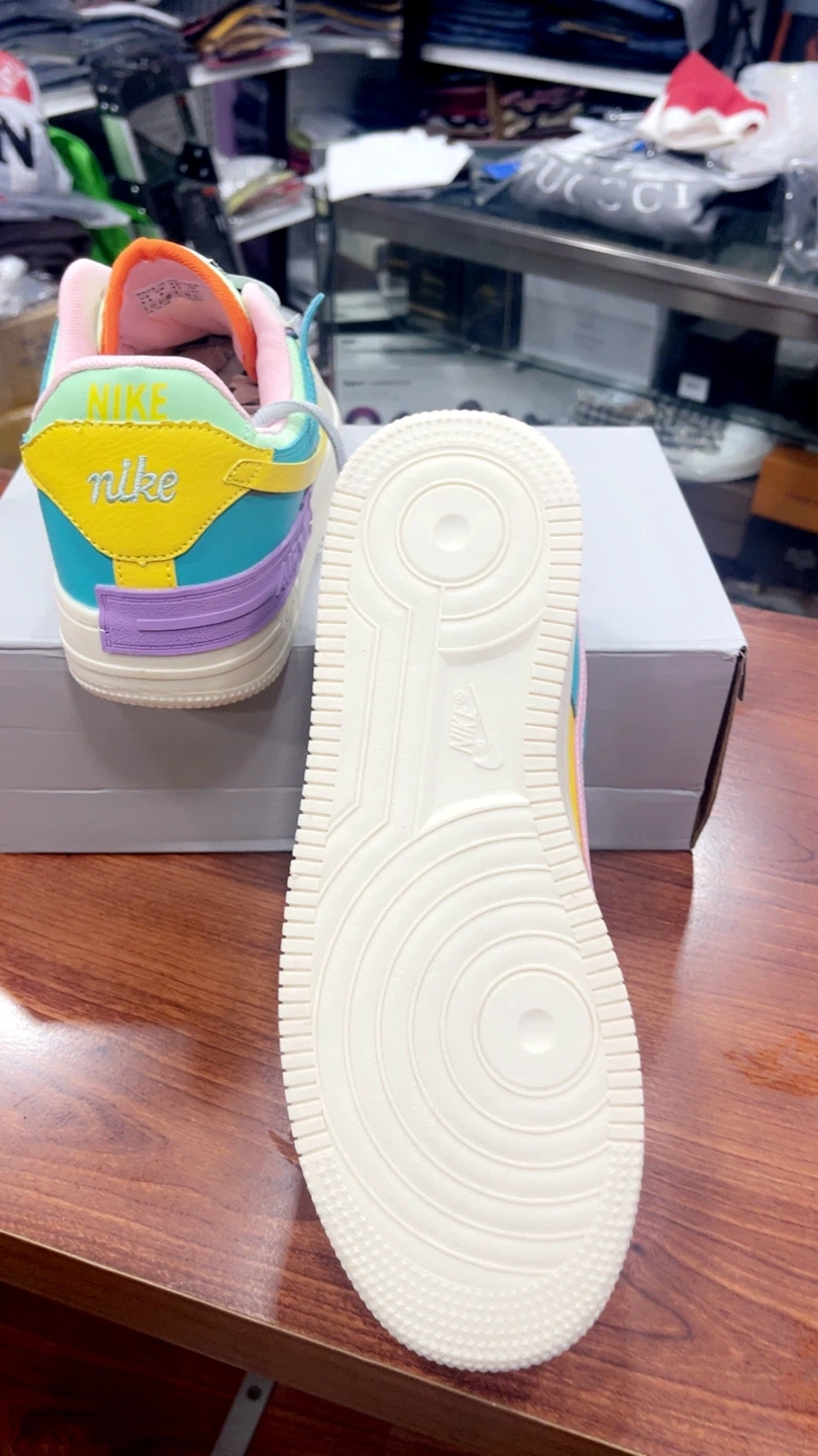82These Nike Air Max sneakers, They feature a fun and colorful design with a mix of pastel shades. The shoes come with the original box in size 7, 8.5, 9.5