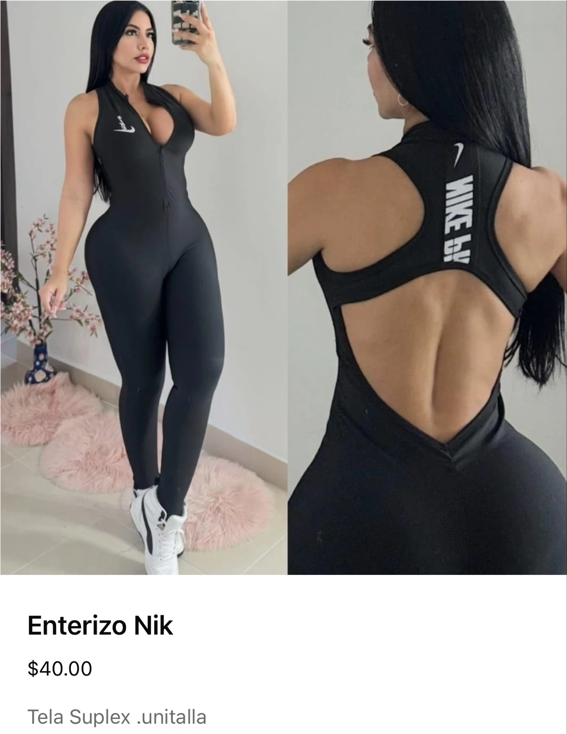 This is a black jumpsuit from Nike. It appears to be a one-size-fits-all item made from Tela Suplex material