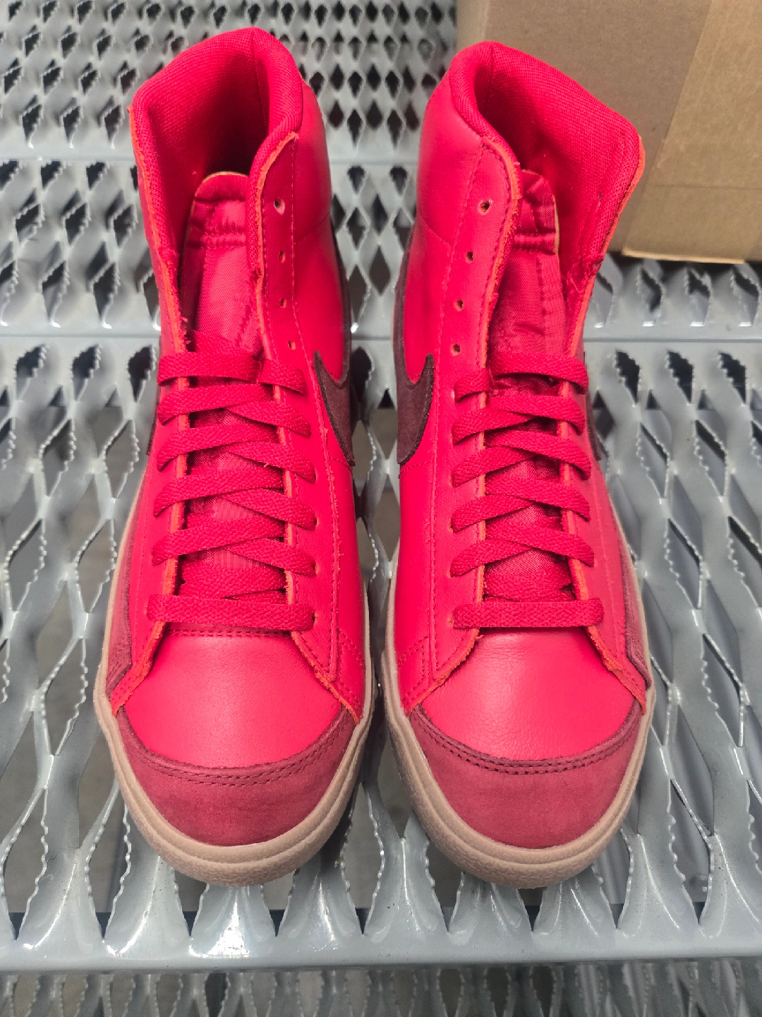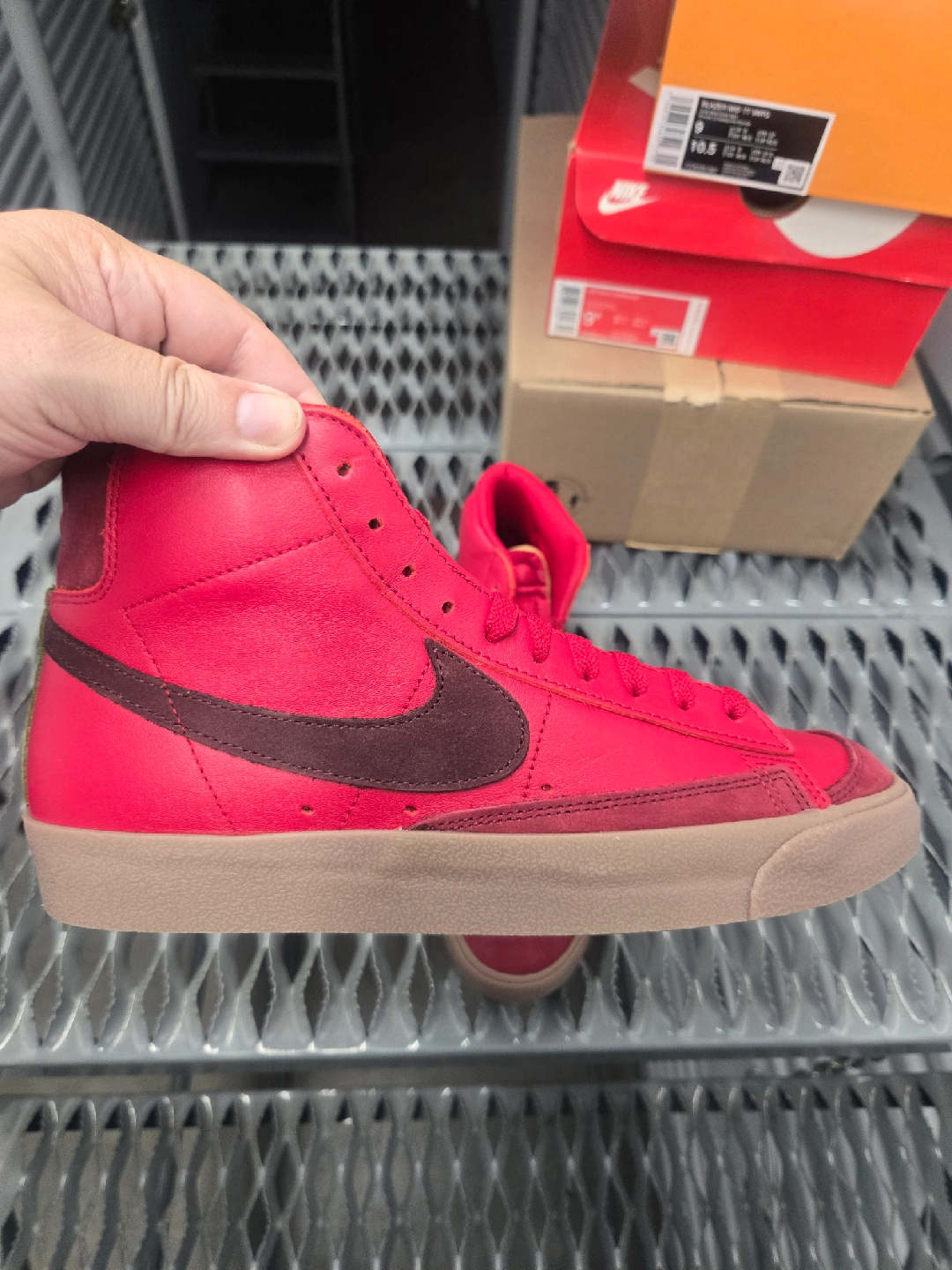 Selling a pair of Nike Blazer Mid '77 sneakers in a striking red and brown colorway. These are a men's US size 9. The shoes come with the original box. Great for adding a pop of color to your wardrobe!