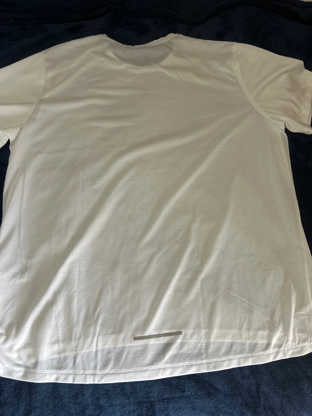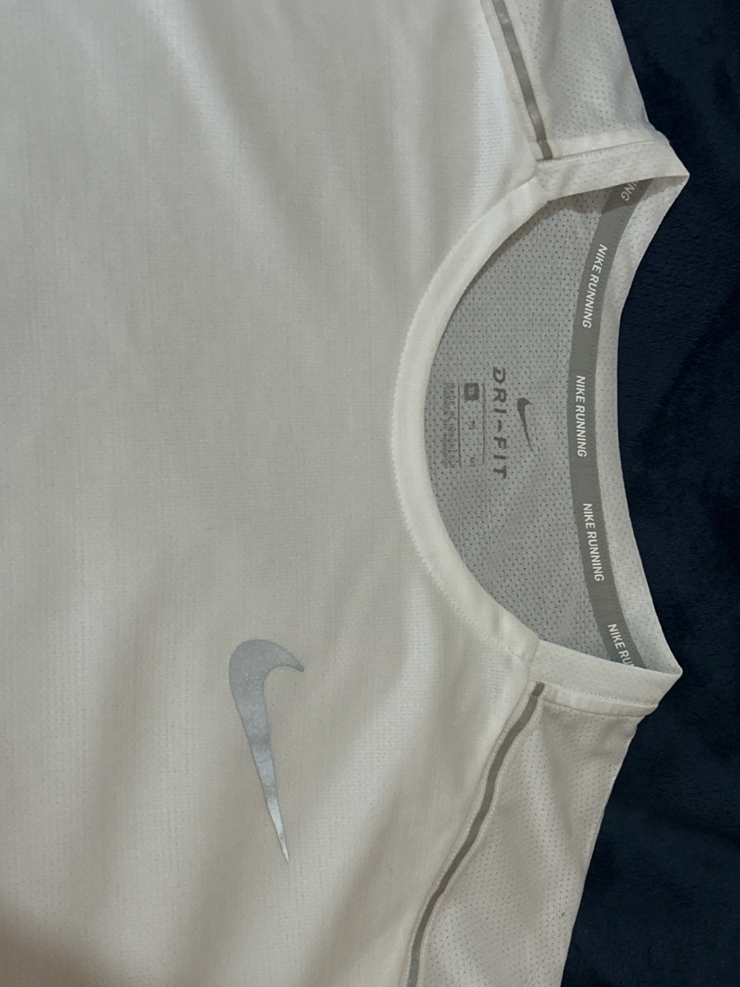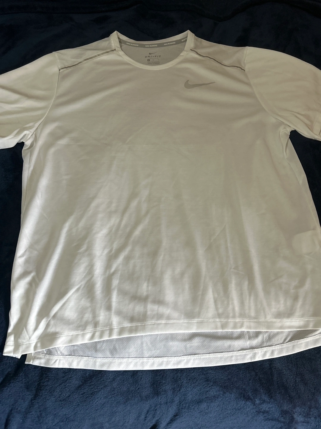 Selling a Nike Dri-FIT running shirt in size XL. It's white and in great condition. Perfect for staying cool and comfortable during your runs!