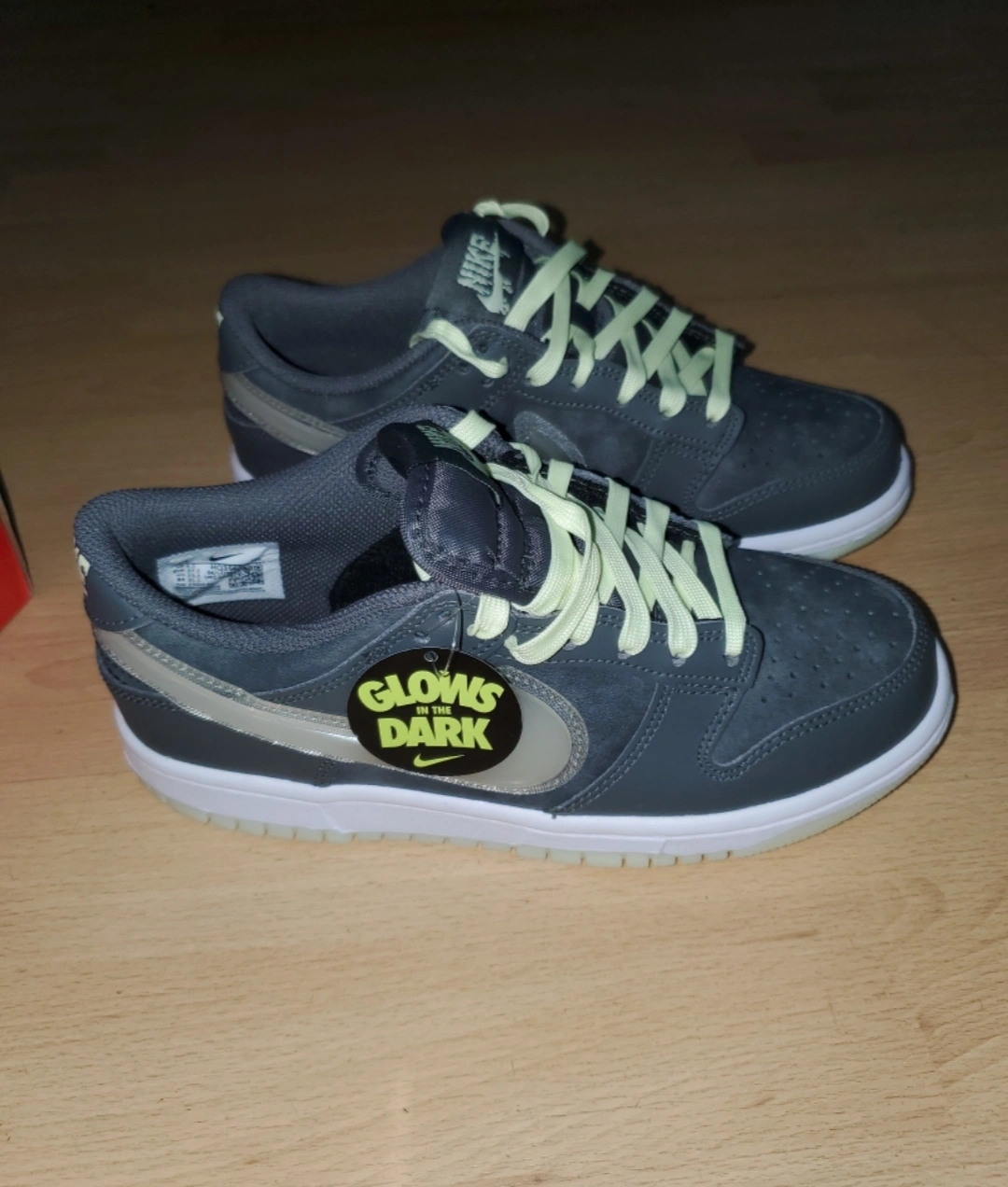 Brand New, come with box with no lid Nike Dunk low ( halloween) glow in the dark Color - iron grey/cool grey-lime ice Size 5Y NEED GONE ASAP bundles are welcome open to reasonable offers. prefer meet up on weekdays evening and weekend morning/afternoon if possible