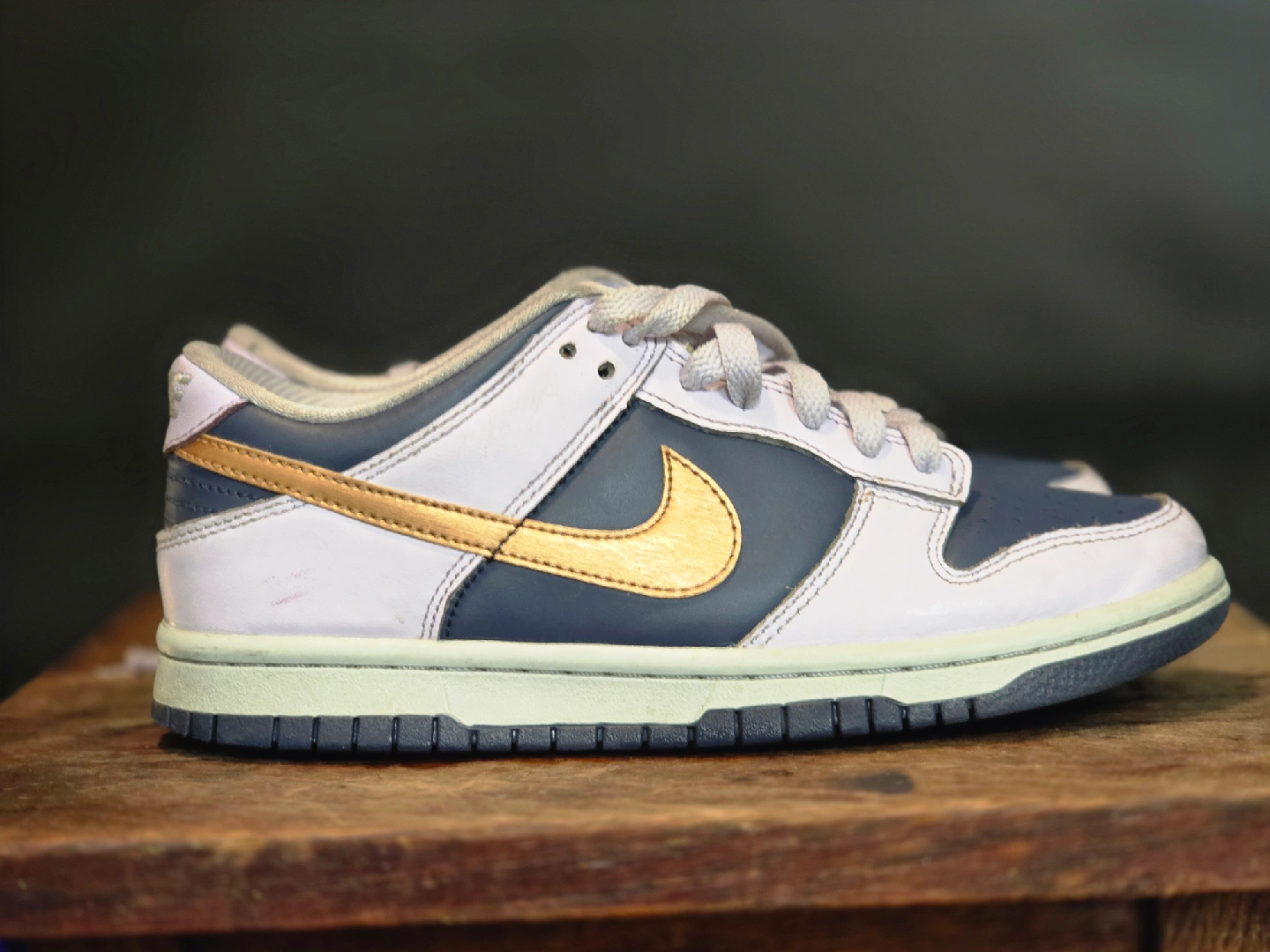 Selling a pair of Nike Dunk Lows in a purple and gold colorway. These are in good condition and ready for a new home!