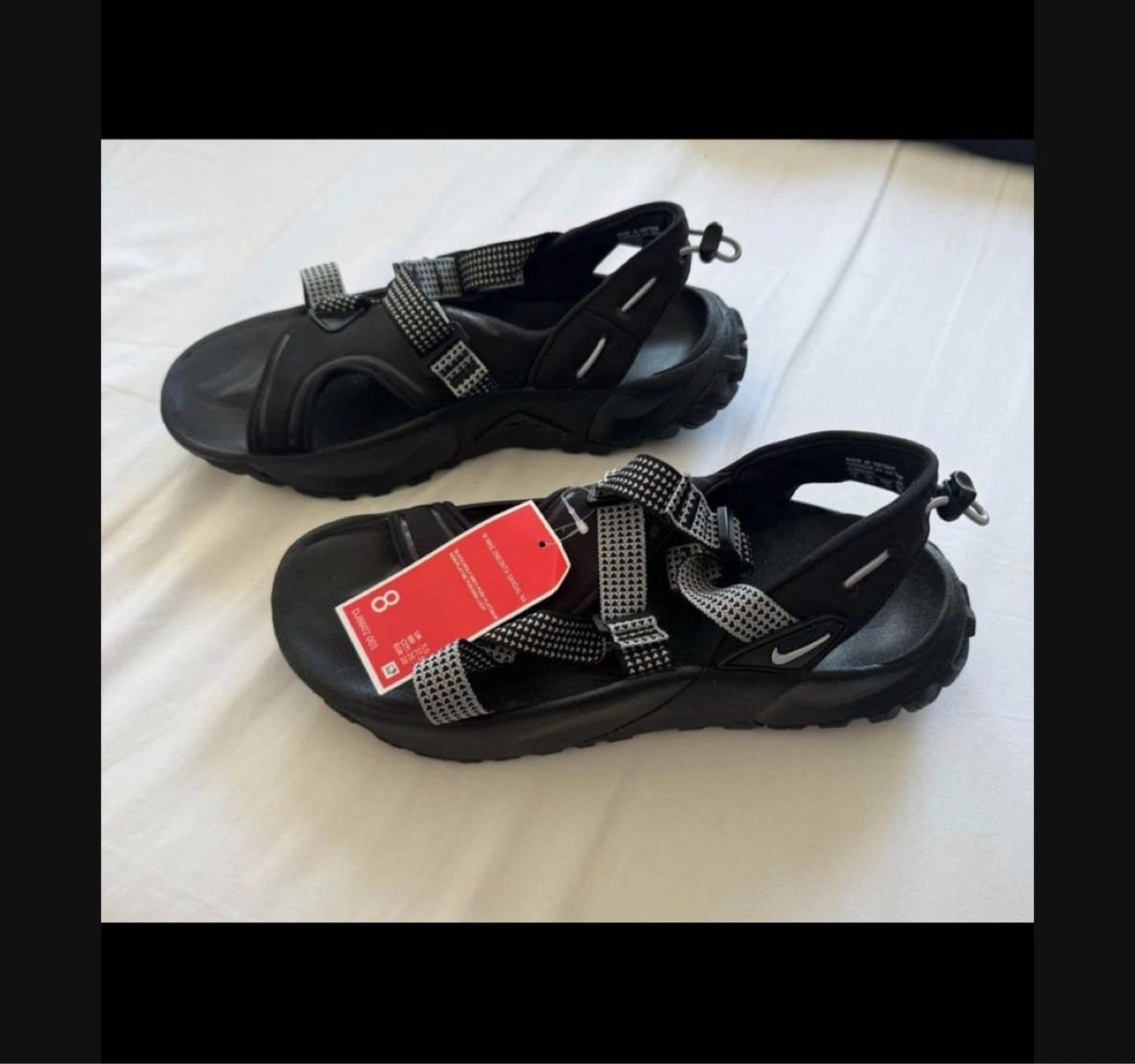 Black and grey Nike sandals. Size 8. New with tag.