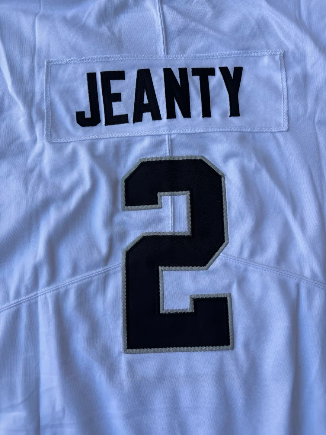 Selling a Nike Raiders Jeanty #2 jersey in size. It's white with black accents and in great condition! Perfect for any Raiders fan