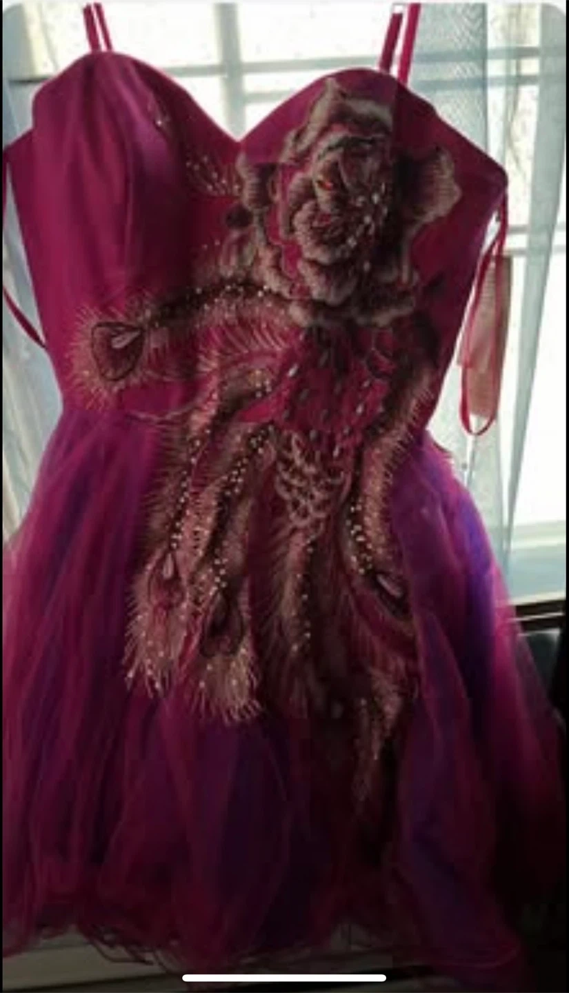 Selling a beautiful Nina Canacci dress in size 4. It's a vibrant pink color with intricate hand-beaded detailing. The dress is made of 100% polyester for both the shell and lining, adding to its quality and feel. The style number is 1515
