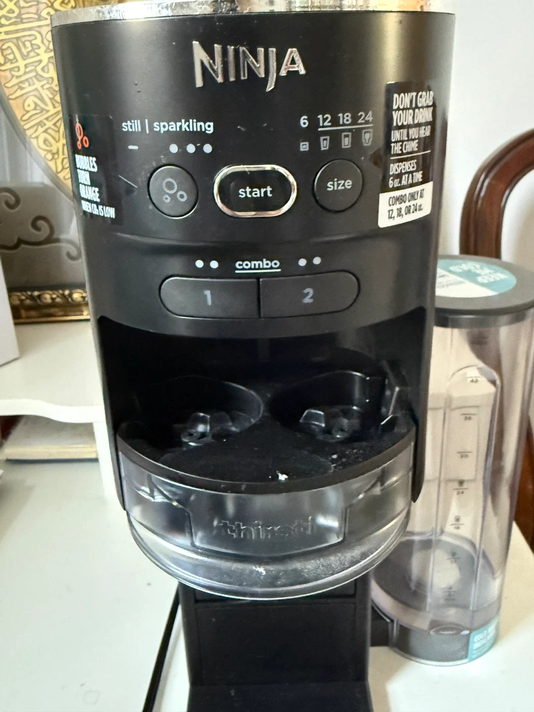 82I'm selling a Ninja Thirsti Drink System! It's a great way to make sparkling drinks at home. Dispenses 6 oz at a time, or combo only at 12, 18, or 24 oz. This was barely used. Price is slightly negotiable.