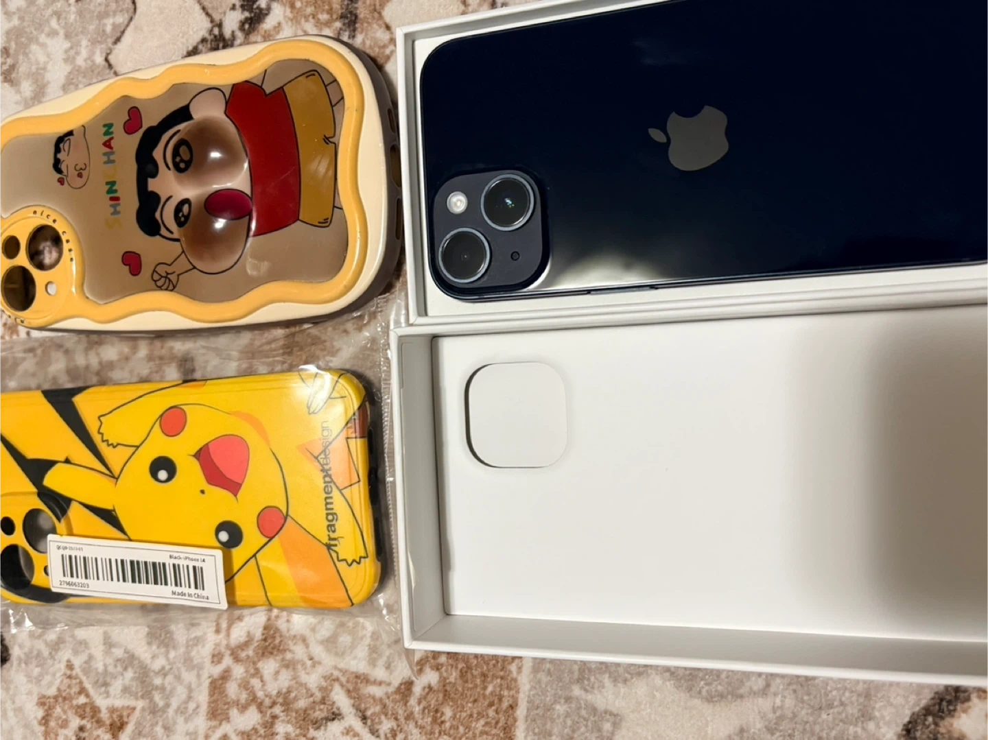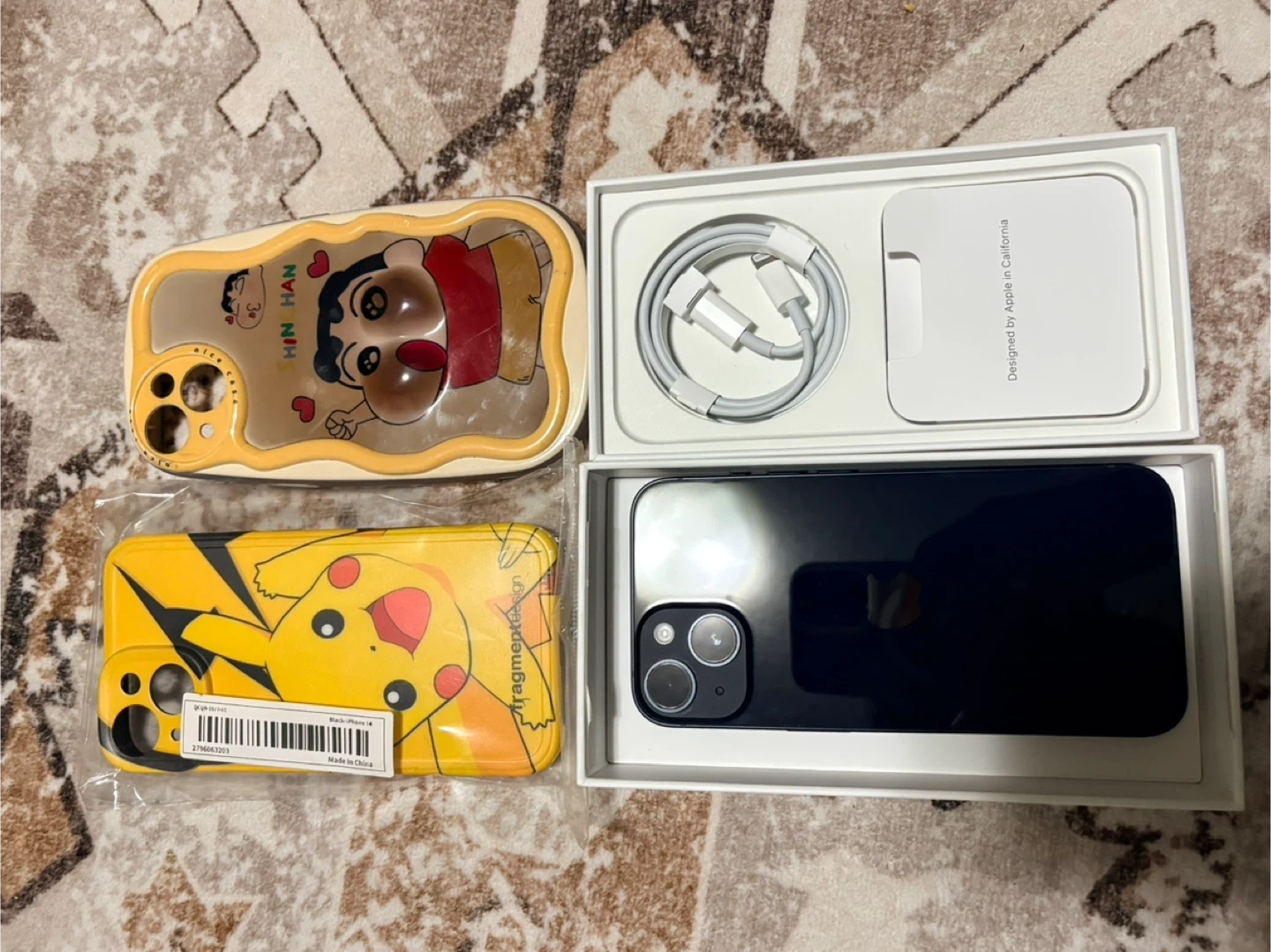 Selling an Apple iPhone 14 in blue. It comes with the original charging cable and unlocked. Also includes two phone cases, one featuring Shin Chan and another with Pikachu. No cracks and scratches. 85% battery life good condition. No low ball please and serious offer only.