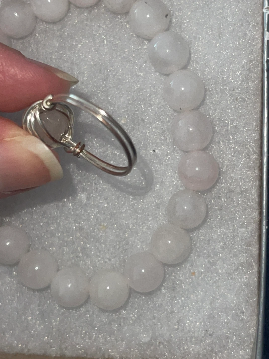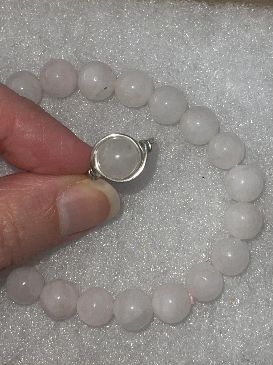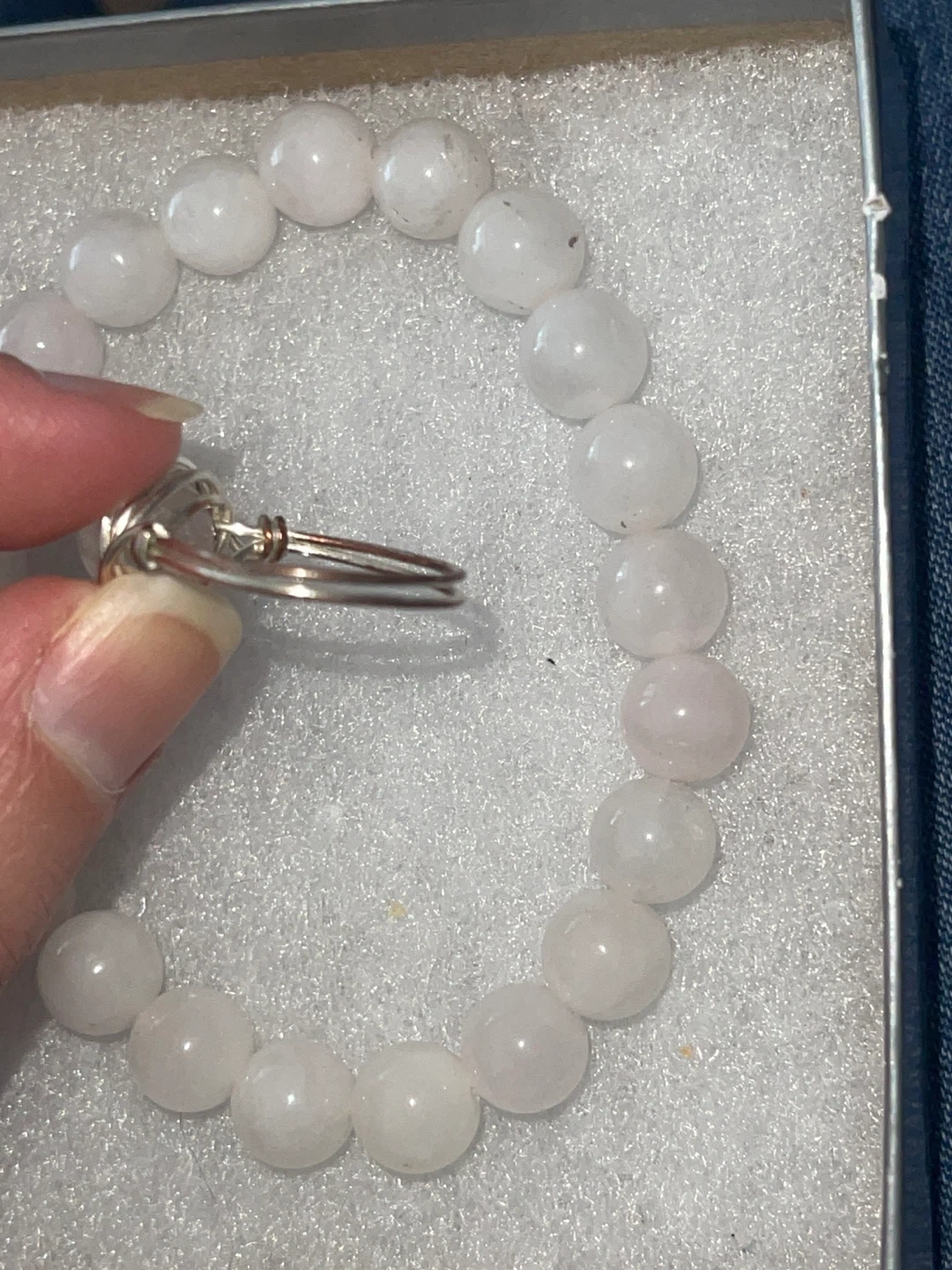 Purchased this set from Happy Soul crystal shop. Both worn in good condition. Ring has some minor tarnishing as shown. Bracelet is one size as it’s elastic.