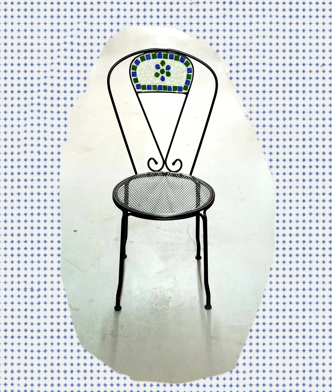 Patio metal chair with mosaic backrest