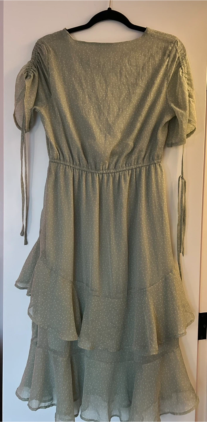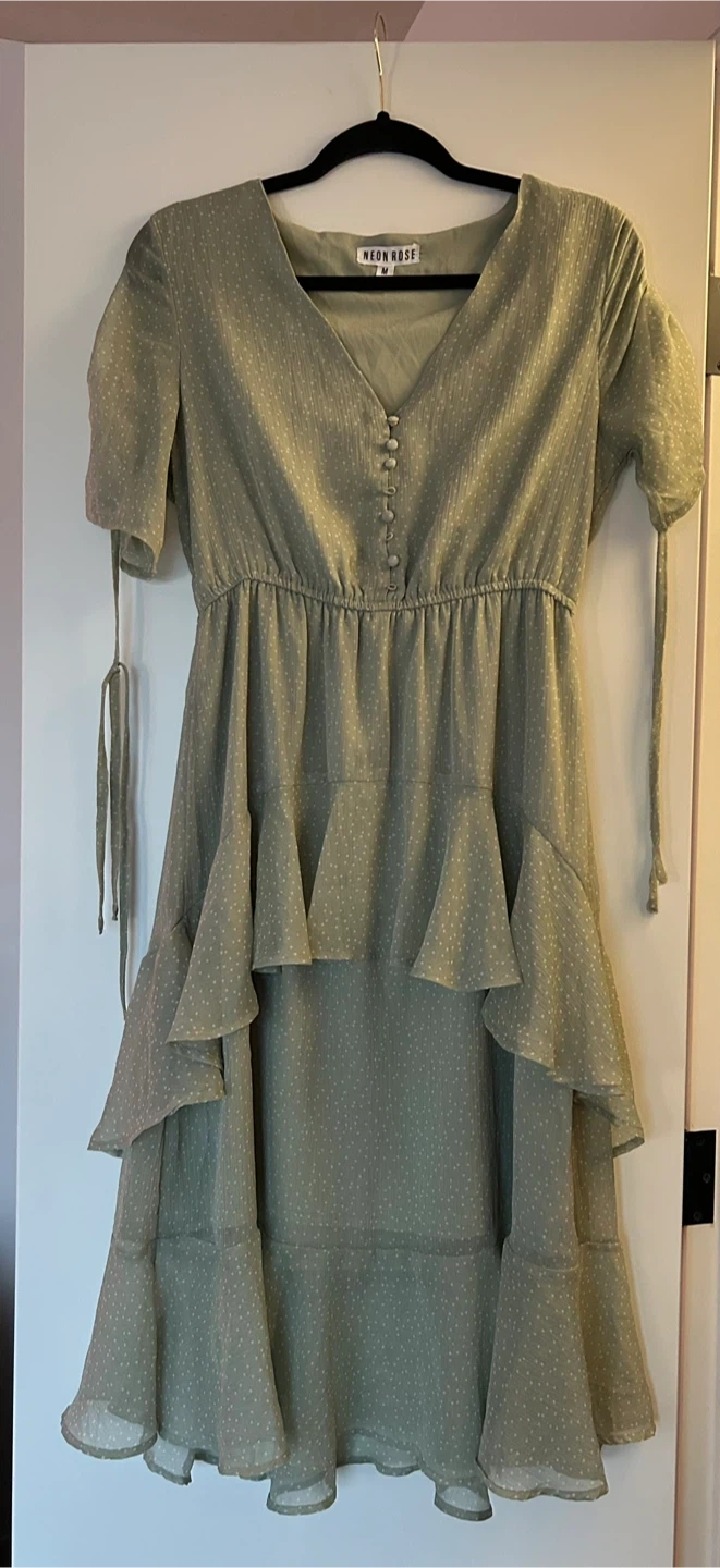 Selling a cute Neon Rose dress in a lovely sage green color! It's a size medium and features a stylish ruffle design. Perfect for a casual day out or a special occasion