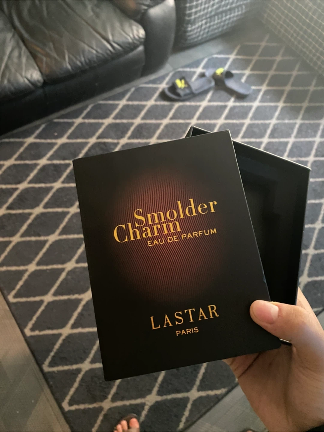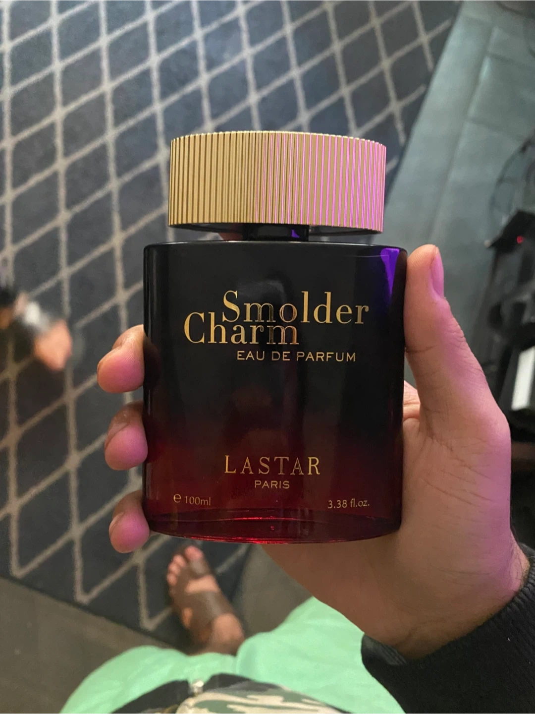 This is the LASTAR Smolder Charm Eau de Parfum for men. It comes in a 100ml bottle, which is 3.38 fl. oz. This fragrance is perfect for special occasions or everyday wear. With box