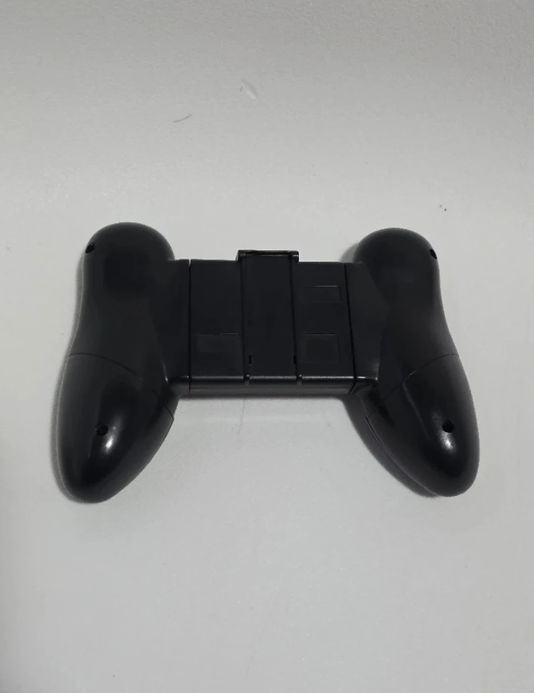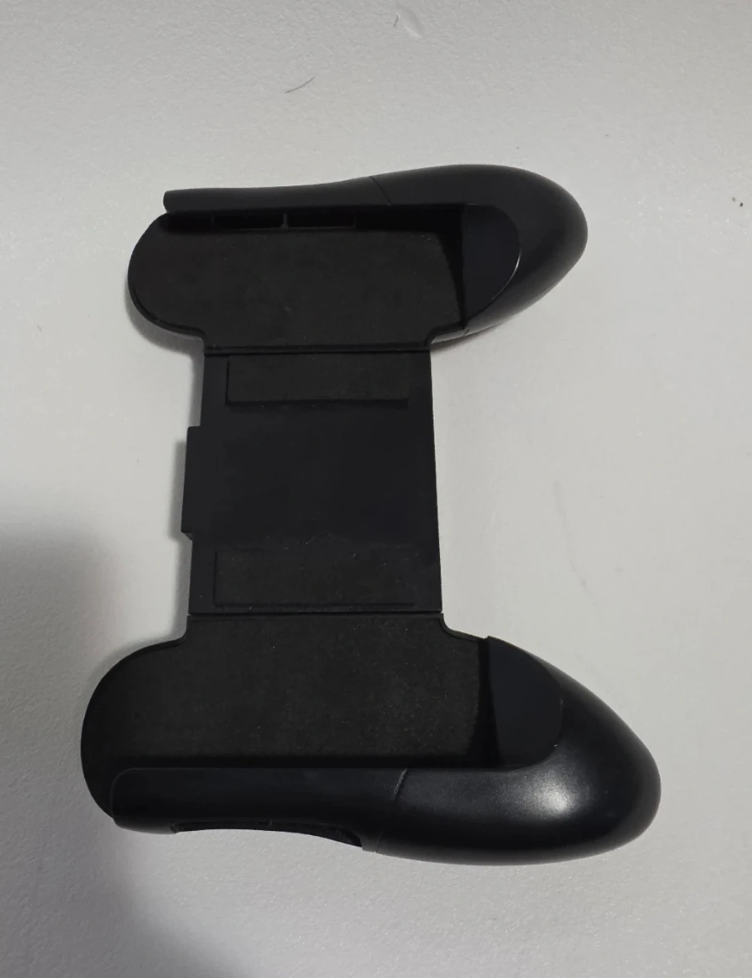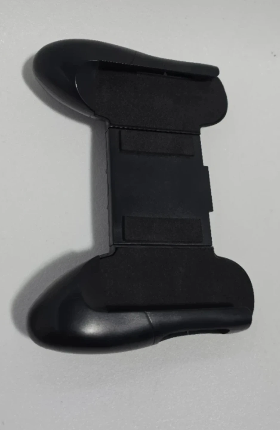 This black mobile game controller grip is designed to hold your phone for a better gaming experience. It features padded grips to secure your device. It's adjustable for different phone sizes.