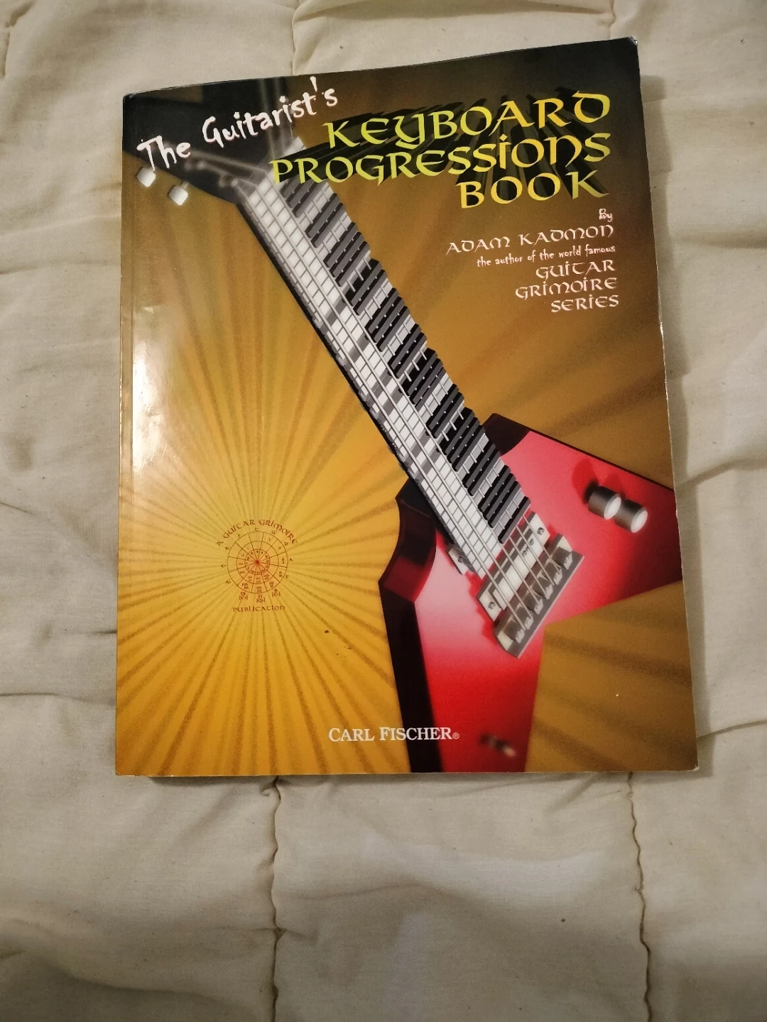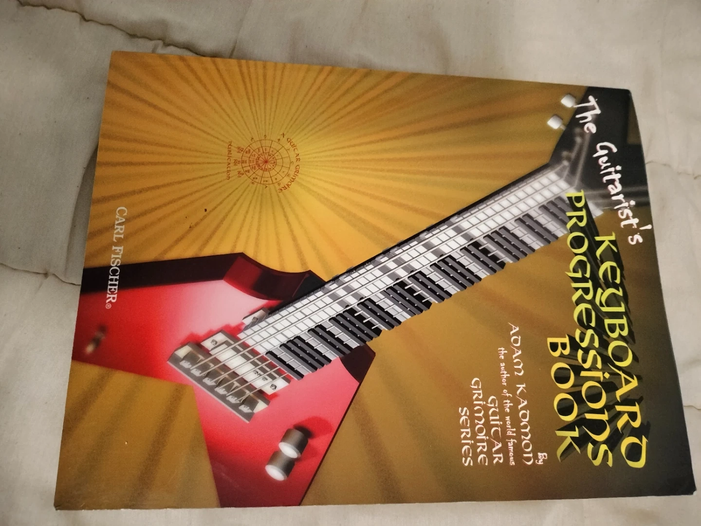 This book focuses on keyboard progressions for guitarists. It's part of the Guitar Grimoire Series by Adam Kadmon. The publication is by Carl Fischer.