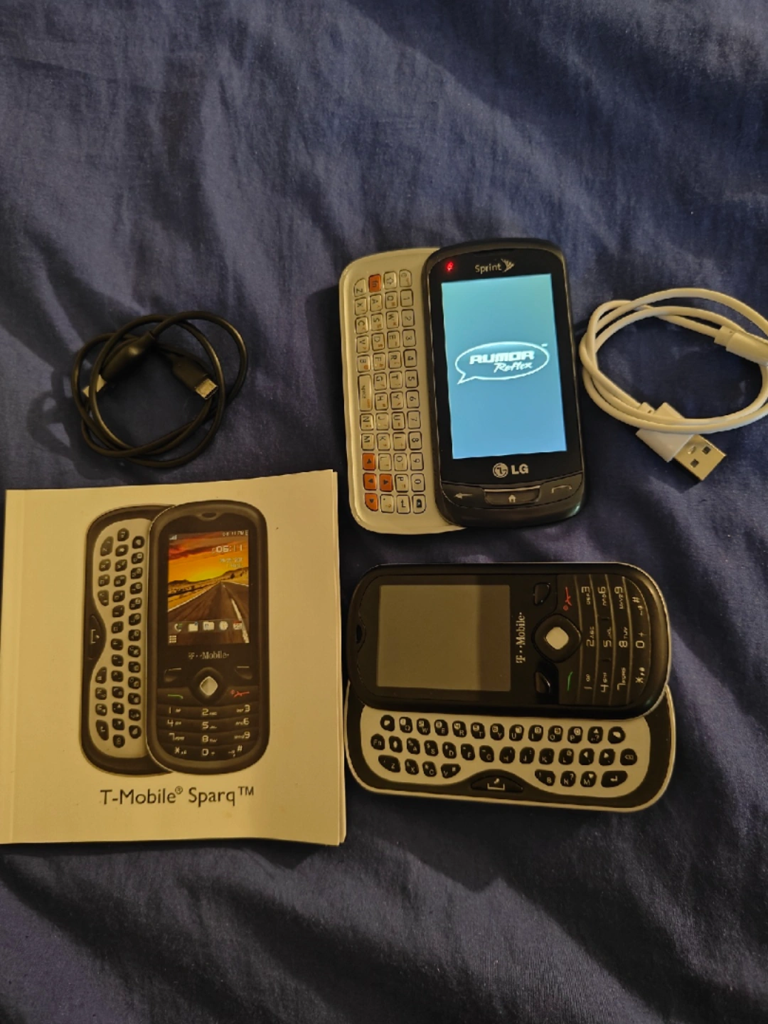 Selling a collection of vintage cell phones including, LG sprint, and T-Mobile models. phones come with charger.Great for collectors or anyone interested in retro tech nostalgia