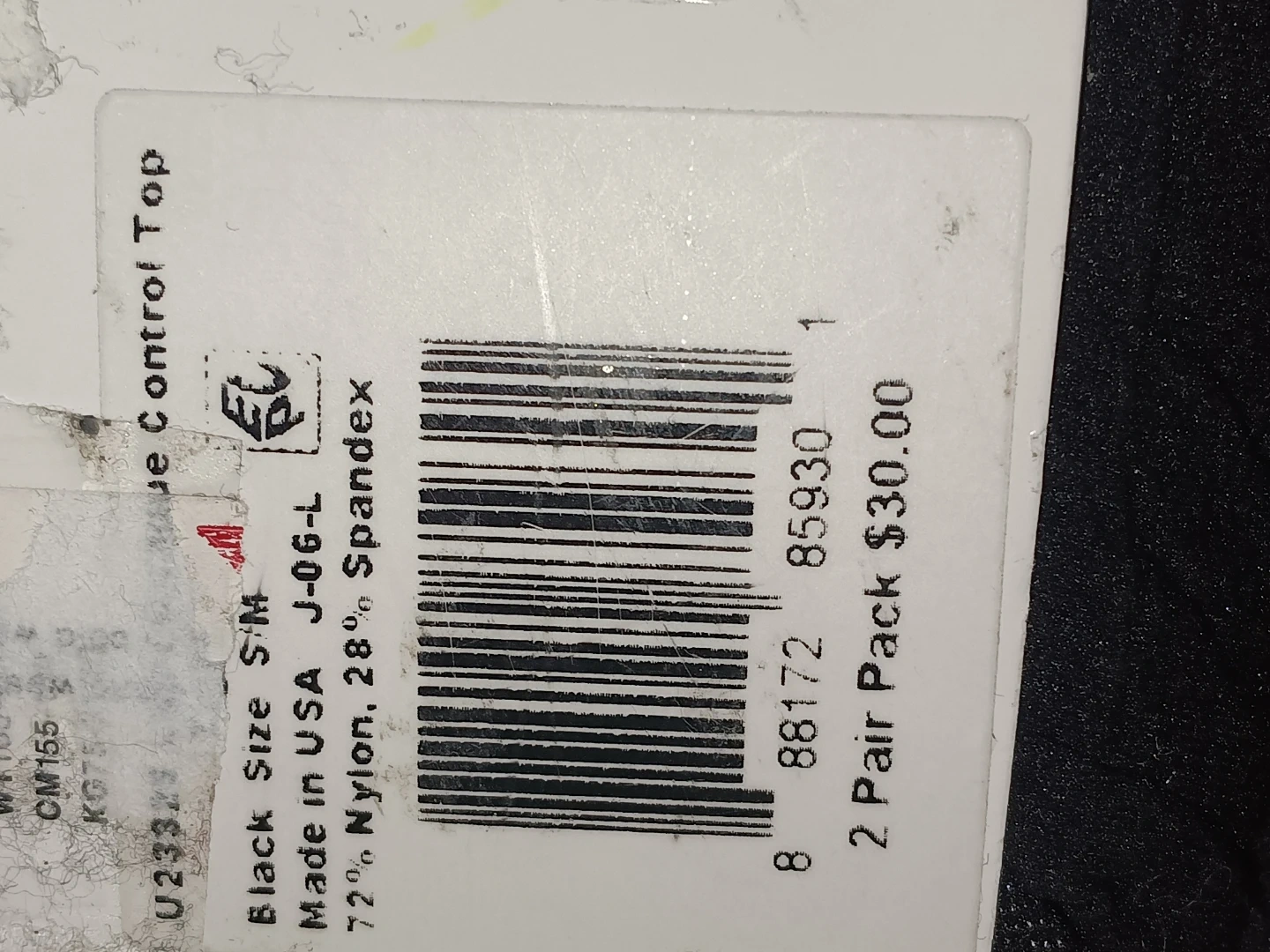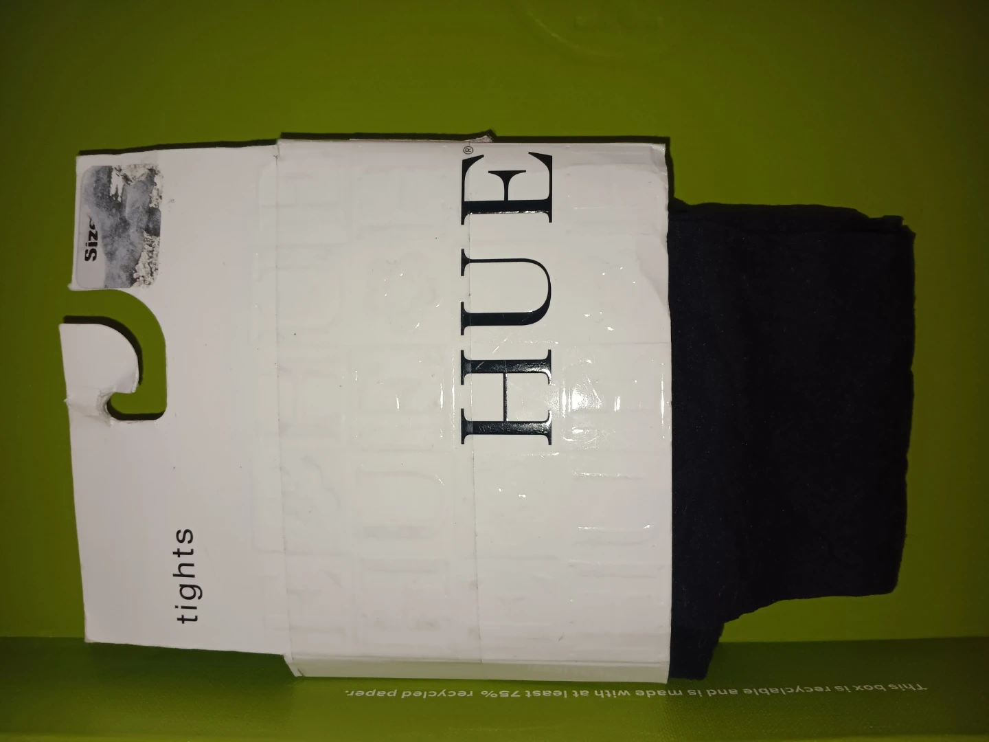 These are HUE brand tights in black. They're a size S-M and made from 72% Nylon and 28% Spandex. This pack includes one pair.