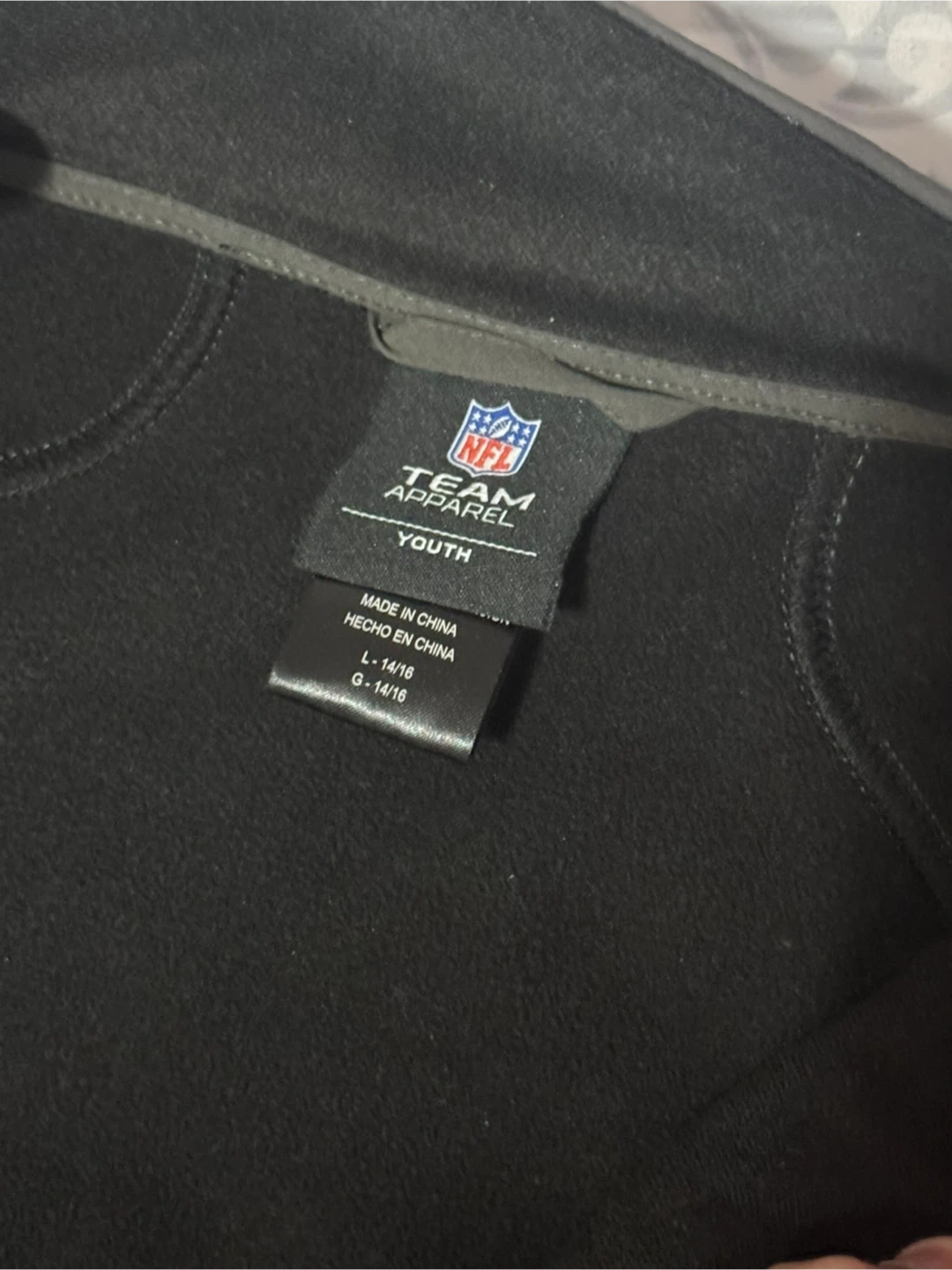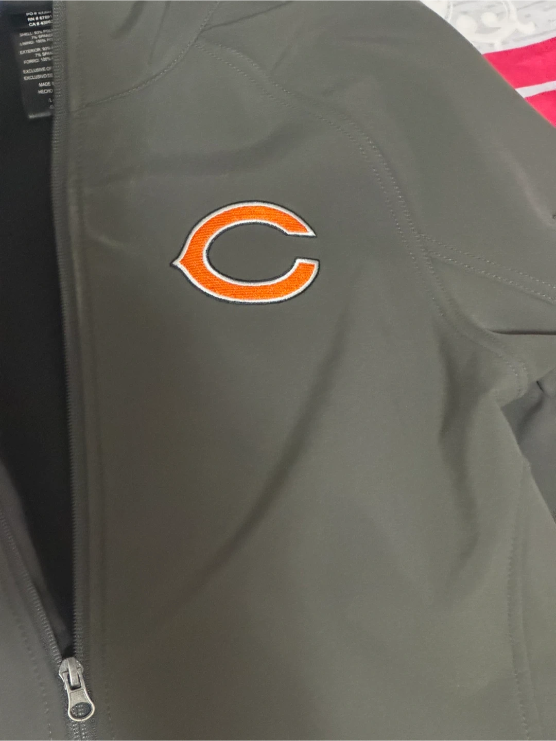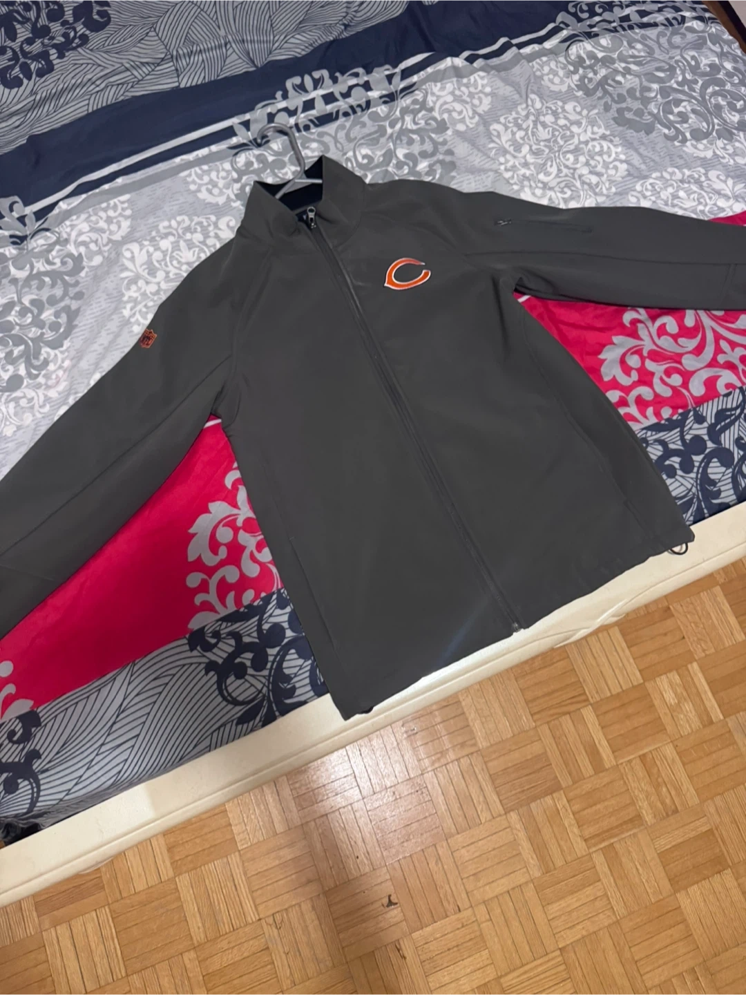 This is a youth Chicago Bears jacket from NFL Team Apparel. It's made with 93% polyester and 7% spandex for the exterior and lining. The jacket is a size L-14/16. Ready to negotiate!!!
