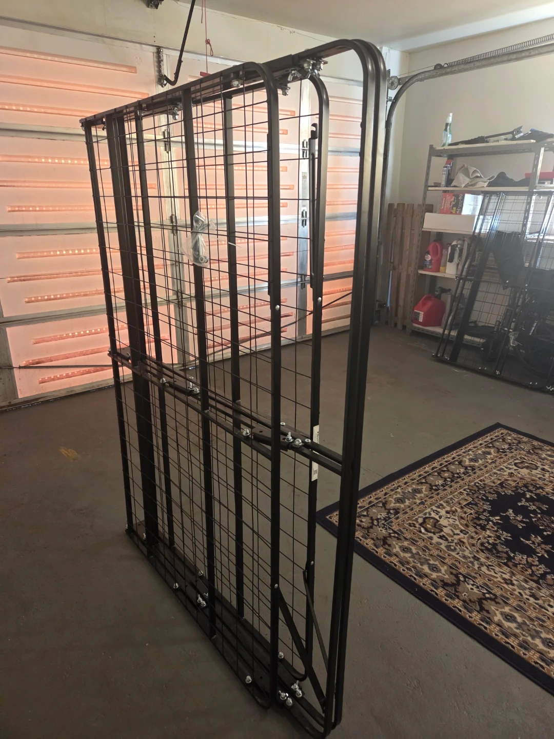 This is a metal bed frame and mattress support. It's black and made of sturdy metal. It's designed to provide strong support for your mattress. Great for a guest room or small space!