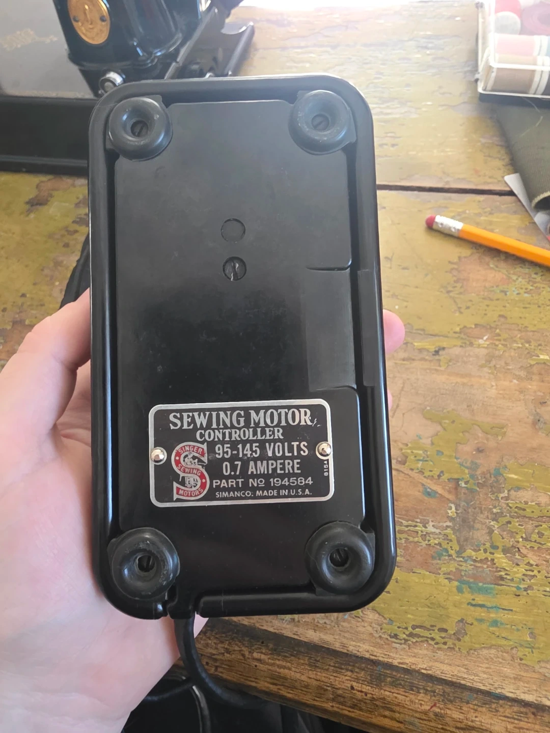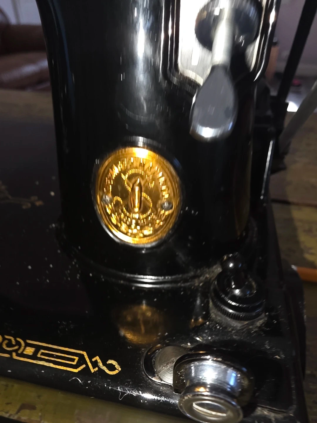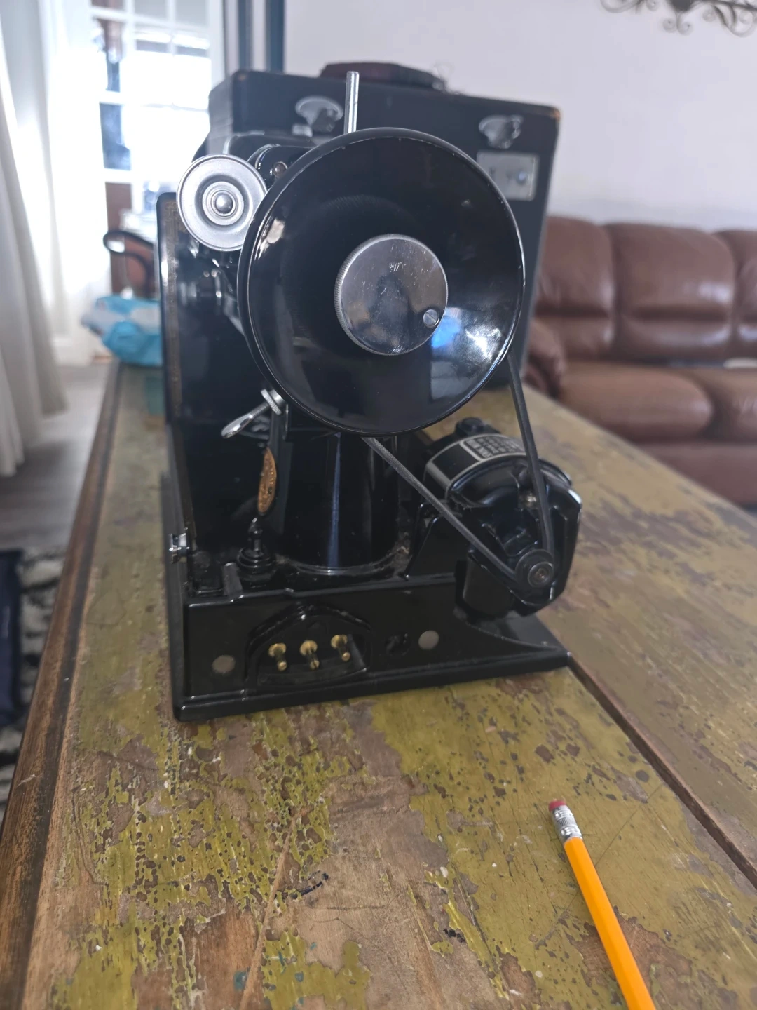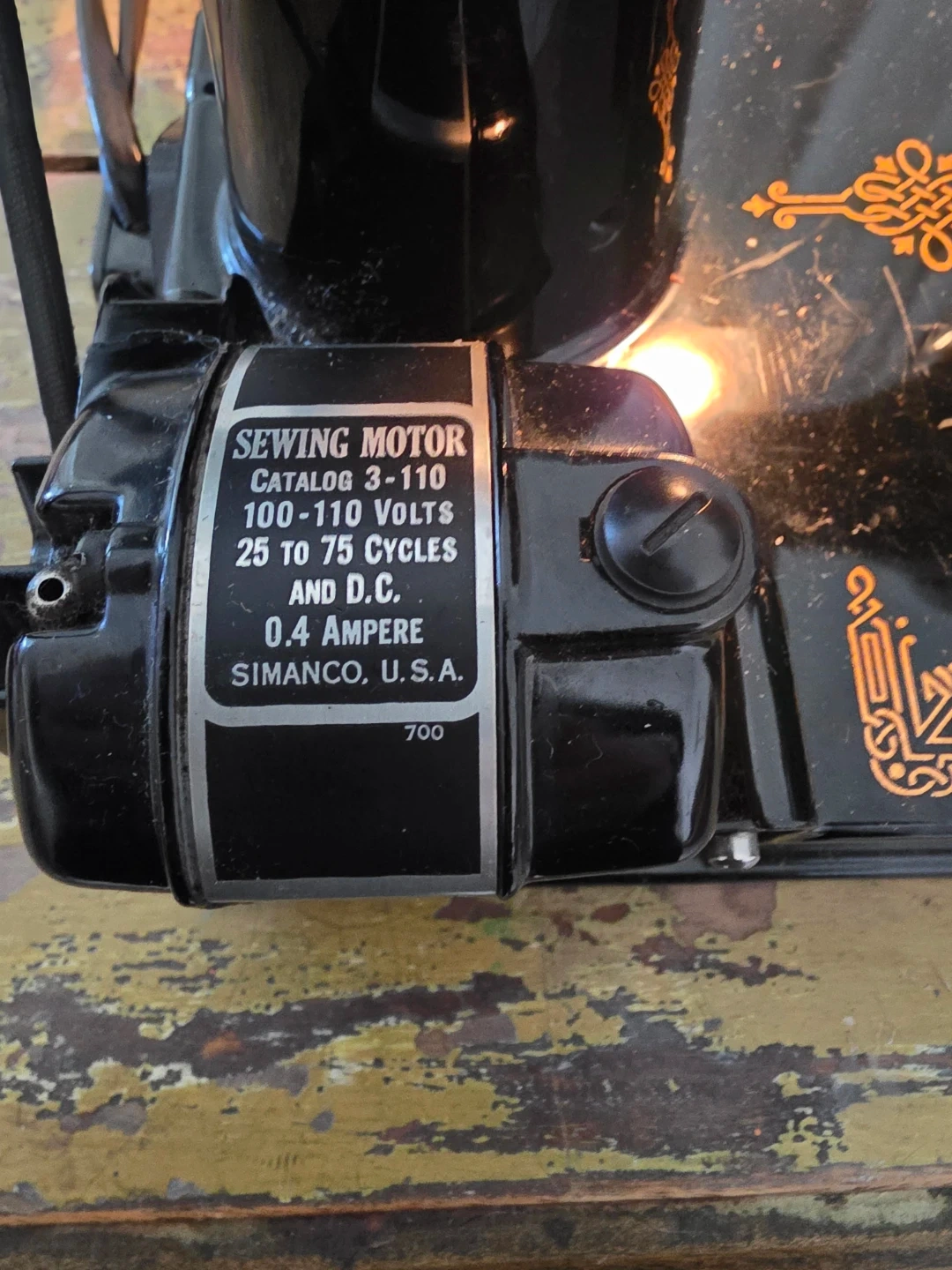 Vintage 1945 Singer Model 221 sewing machine (Serial #AG545804), allotted September 19, 1945 from Singer’s Elizabethport, New Jersey factory.