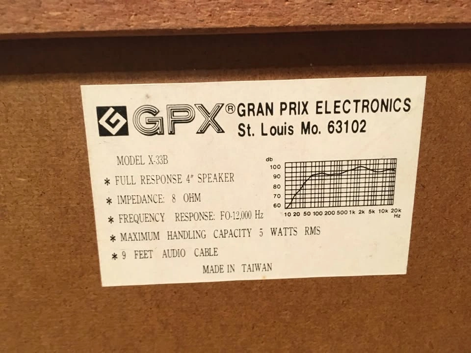PAIR OF GPX X-33B SPEAKERS FULL RESPONSE 4" SPEAKER NOT TESTED