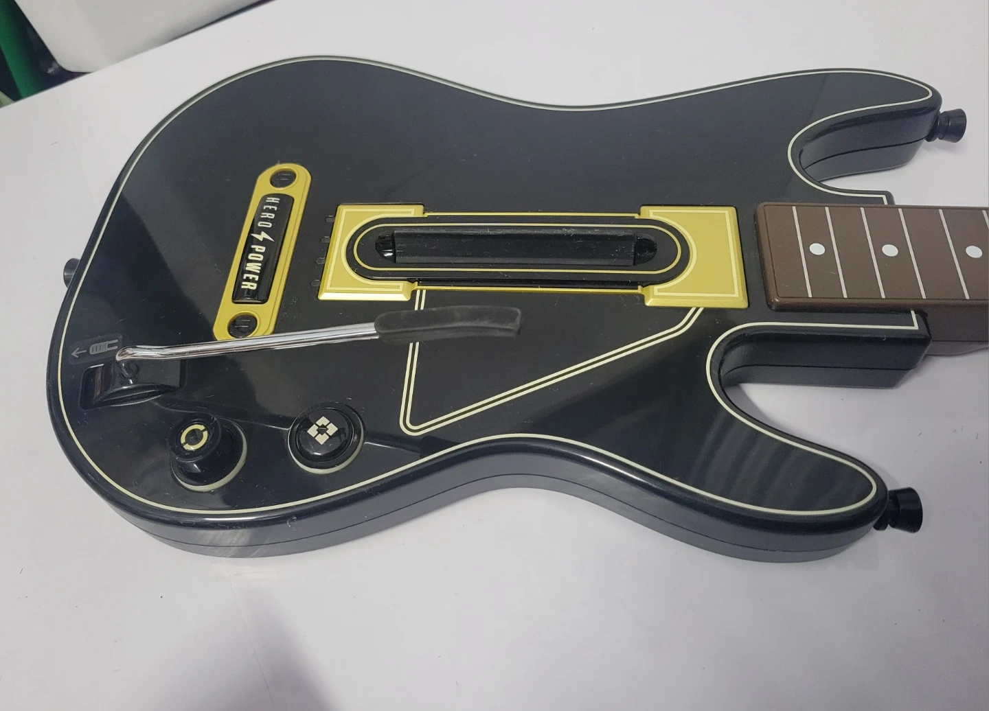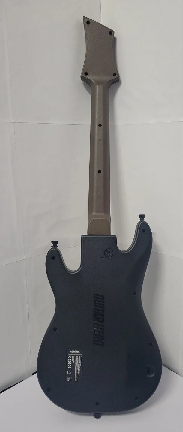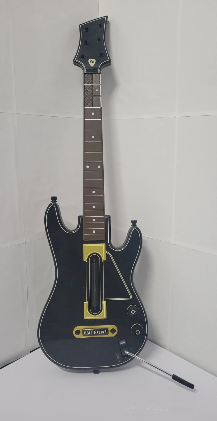 This is a wireless guitar controller for Guitar Hero games. It's black and designed like a guitar. Requires 2 AA batteries (not included). Condition like new.