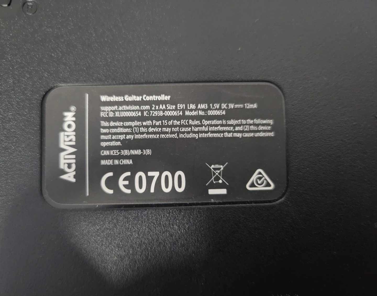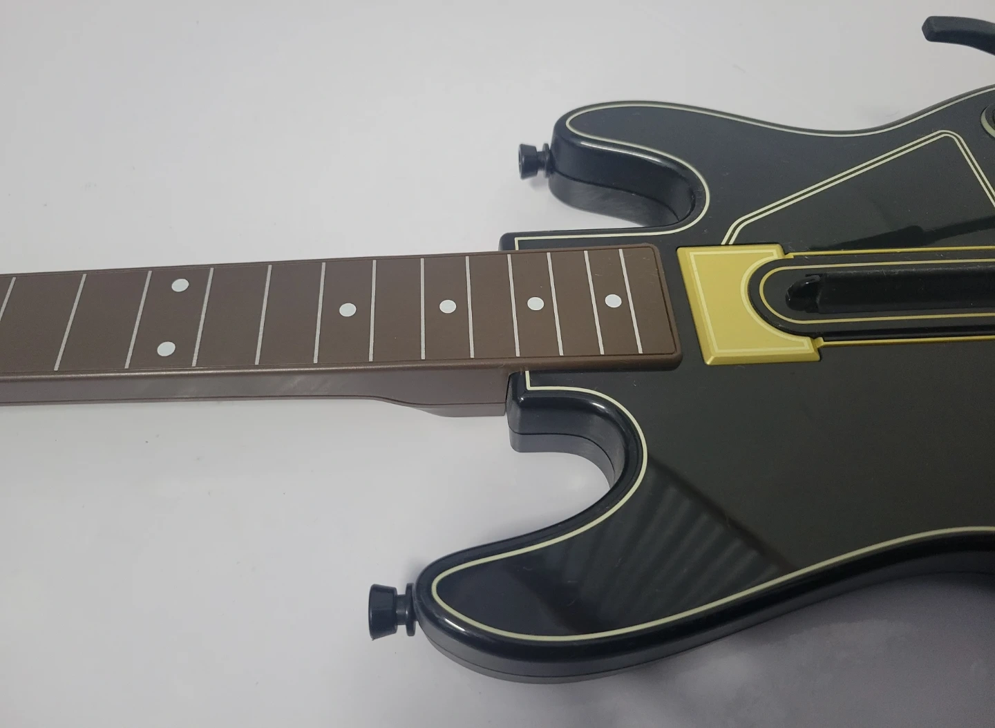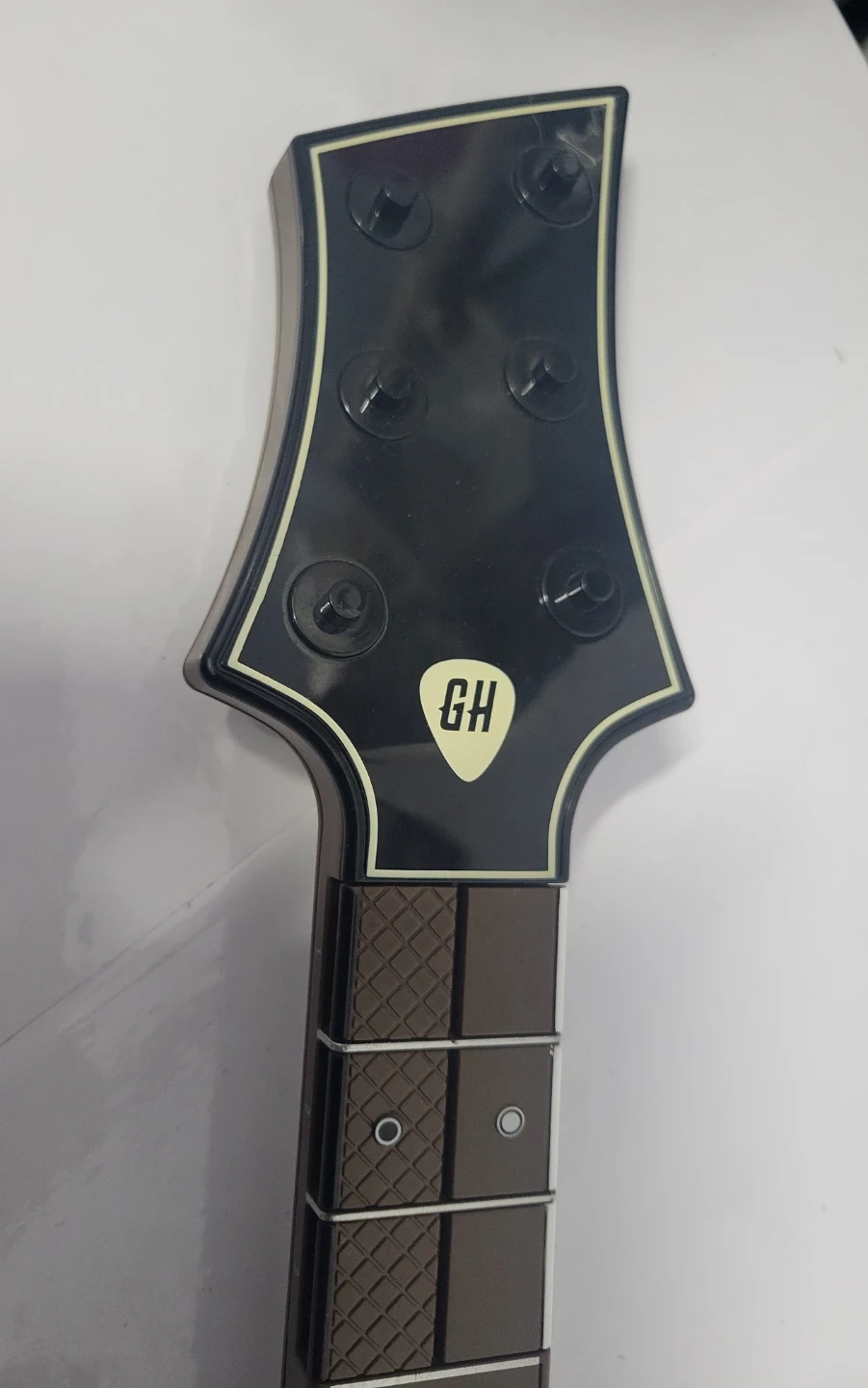 This is a wireless guitar controller for Guitar Hero games. It's black and designed like a guitar. Requires 2 AA batteries (not included). Condition like new.