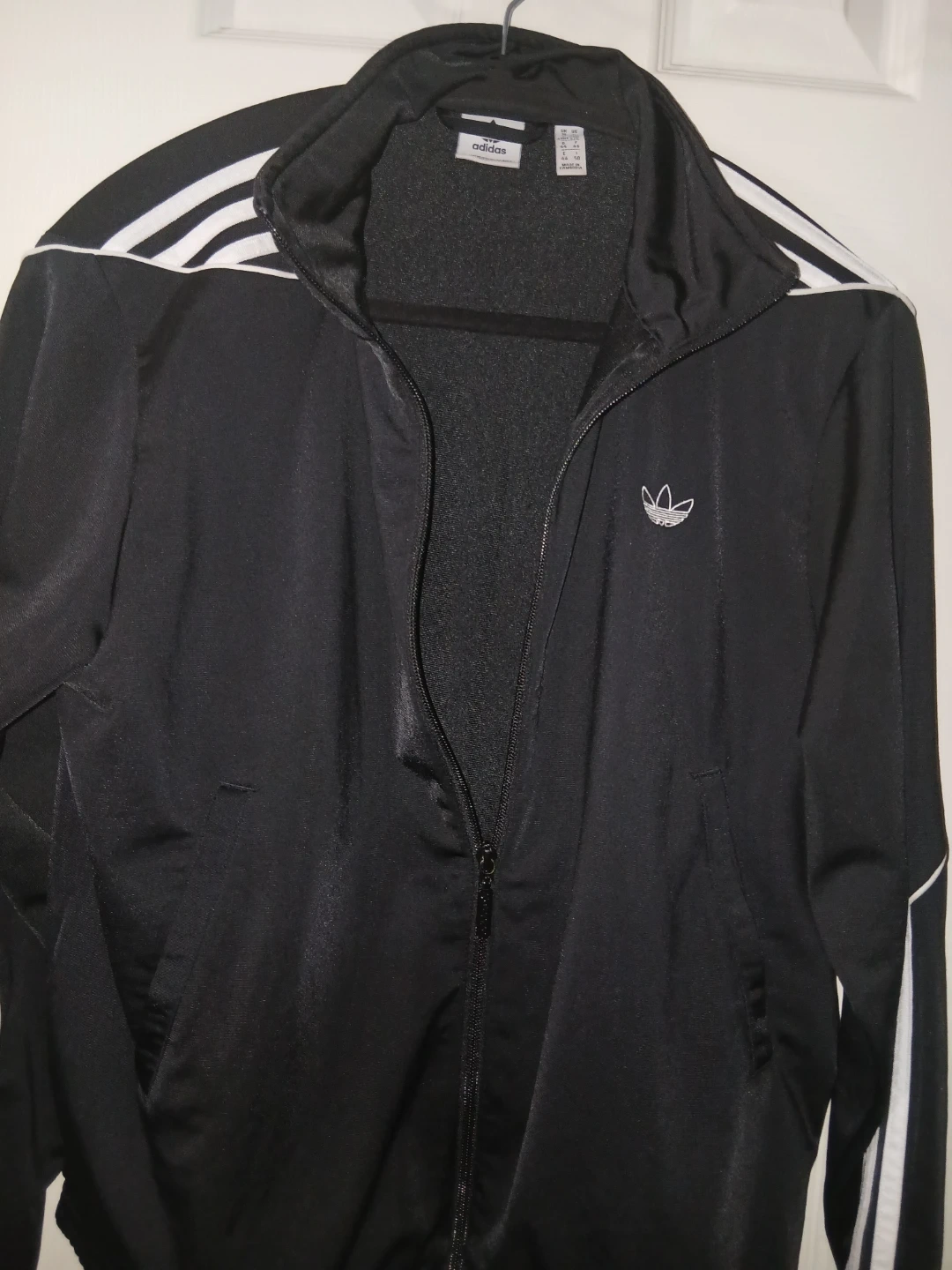 Selling an Adidas Firebird track jacket in black, size large. Perfect for workouts or casual wear!