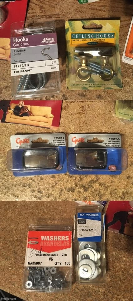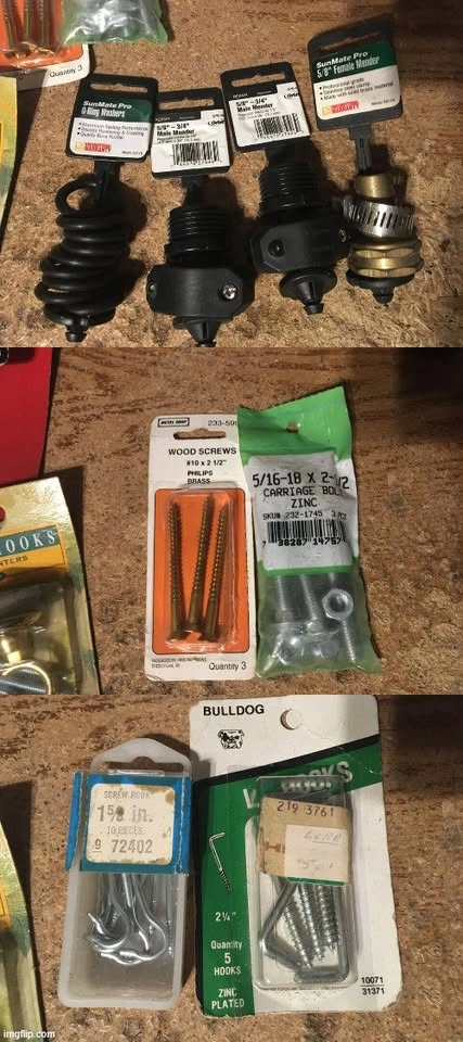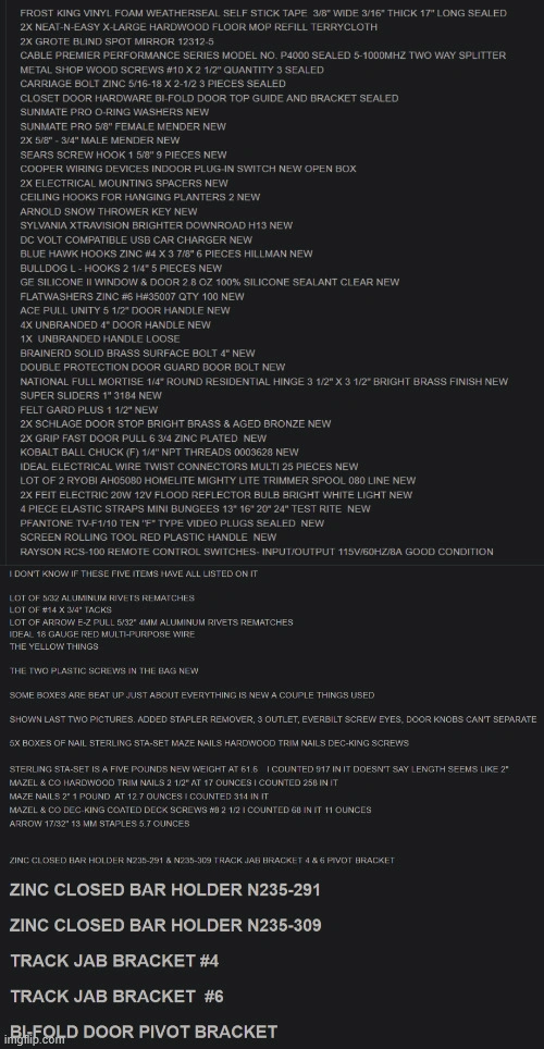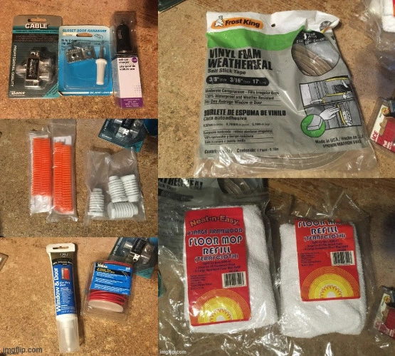 Big lot of random household items weather seal stick tape mop refill blind spot mirror cable different forms of screws bolts o-ring washers female member other garden items. last picture has the full list of all the items on there The nail boxes have been opened and counted for how many nails are left with the weight picture 9 pick up at house