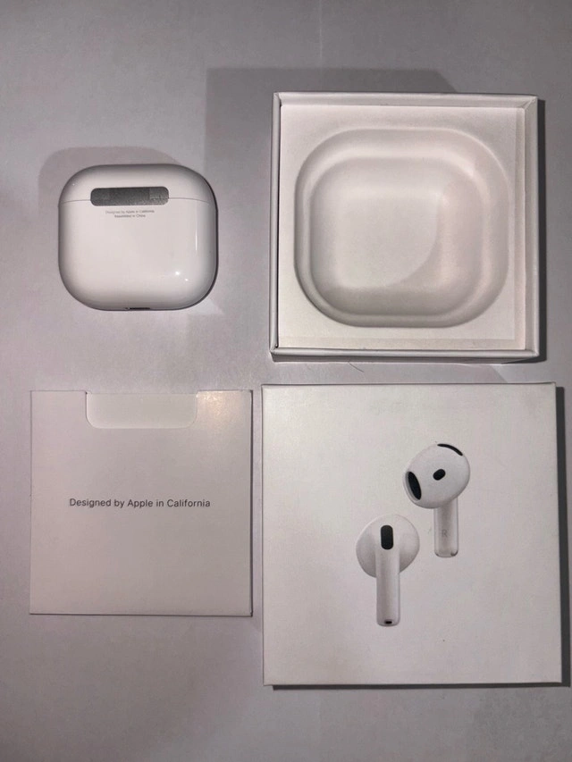 Apple AirPods 4th Generation. Fully tested and works perfectly. Great sound quality. Strong battery life. Comes with charging case. Let me know if you're interested!