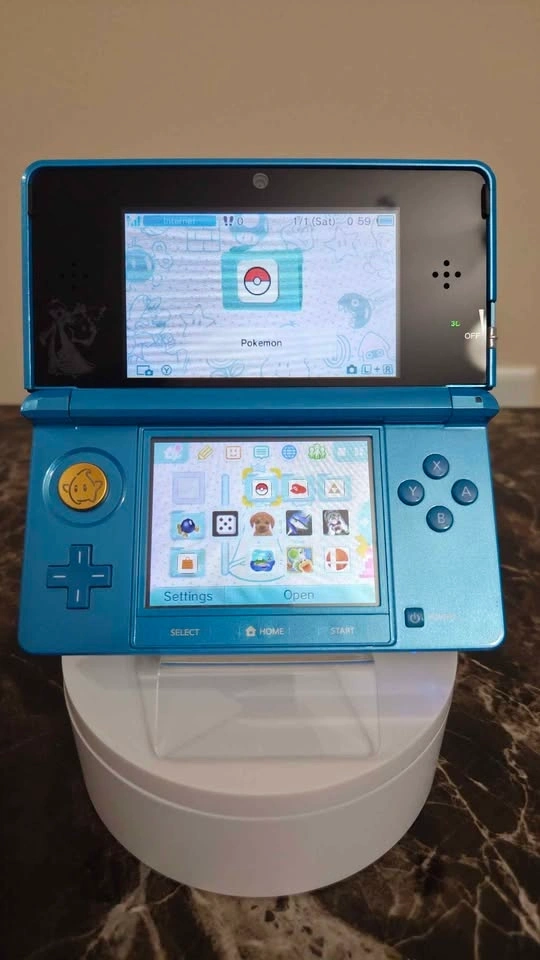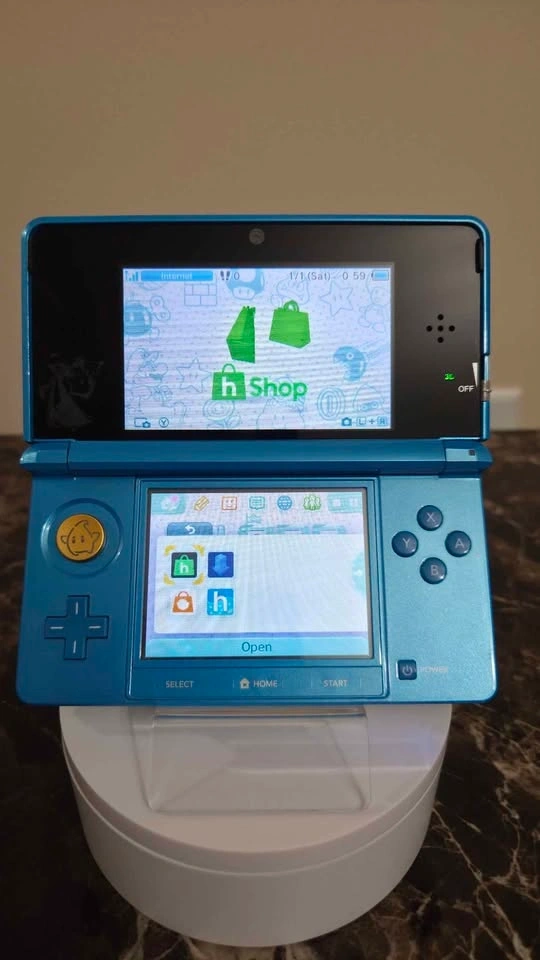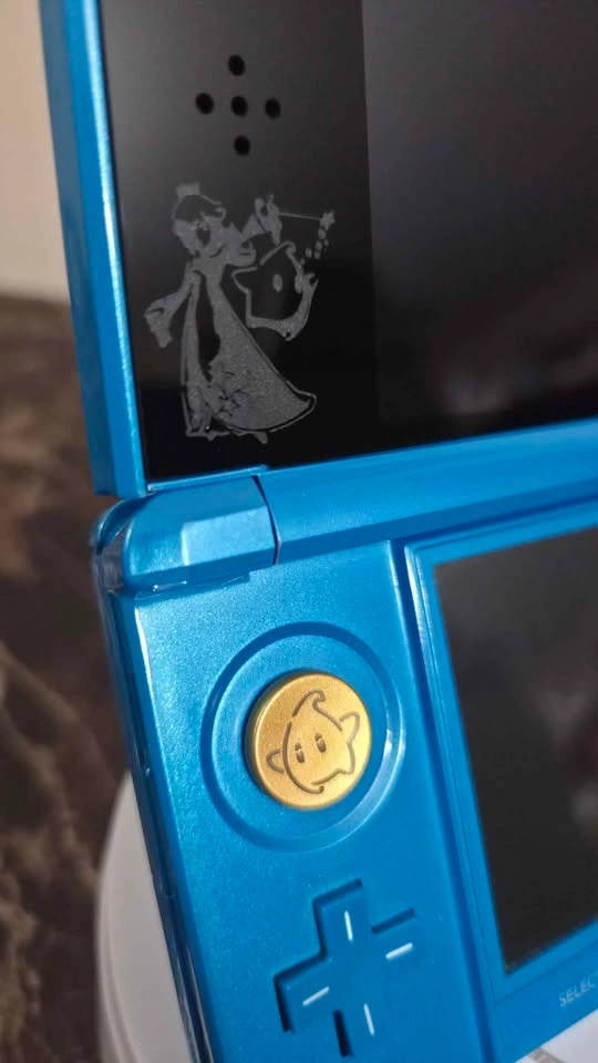Light Blue Modded 3DS | Mario Galaxy Engraved C-Pad & Lens | 32g