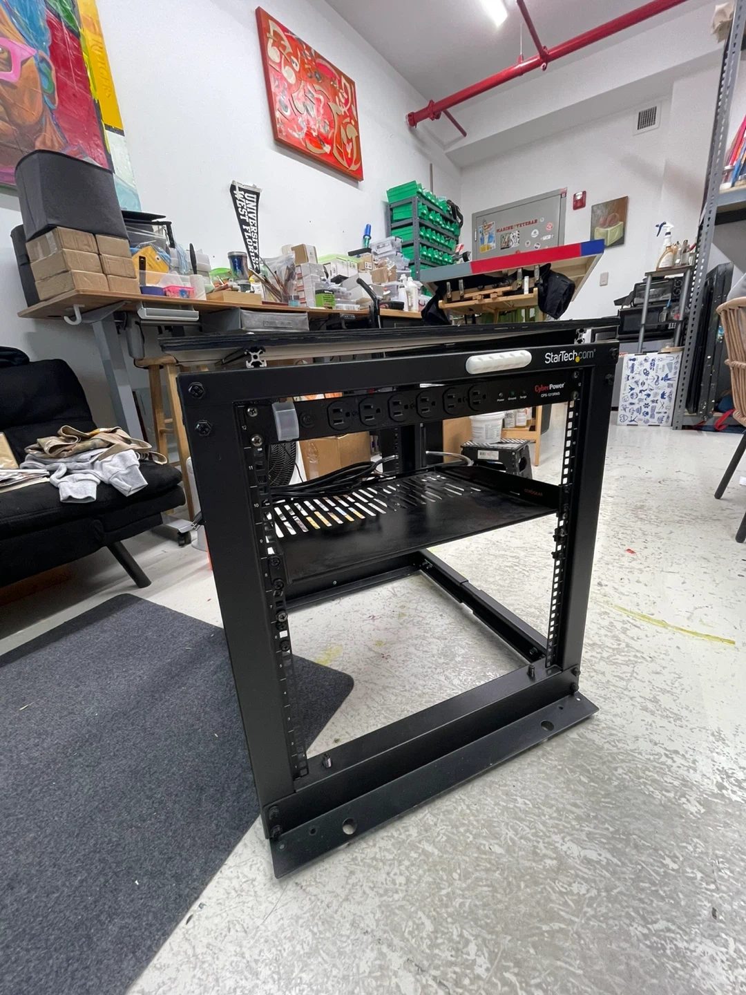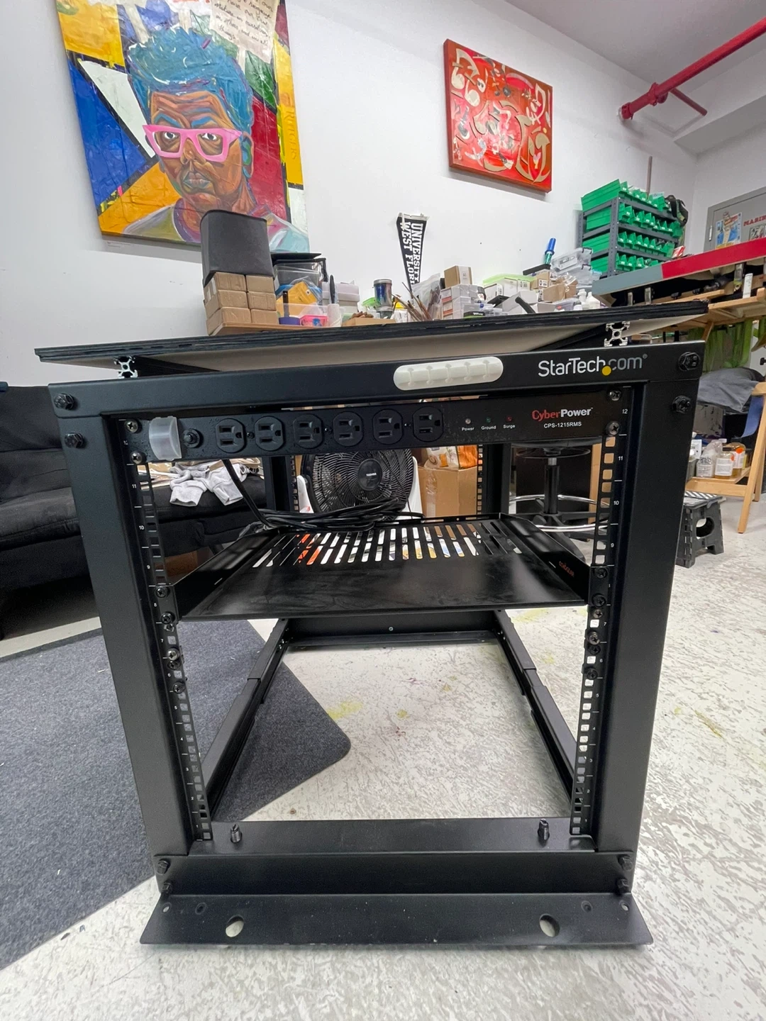 With CyberPower CPS1215RMS Surge Protector, 120V/15A, 12 Outlets, 15 ft Power Cord, 1U Rackmount.