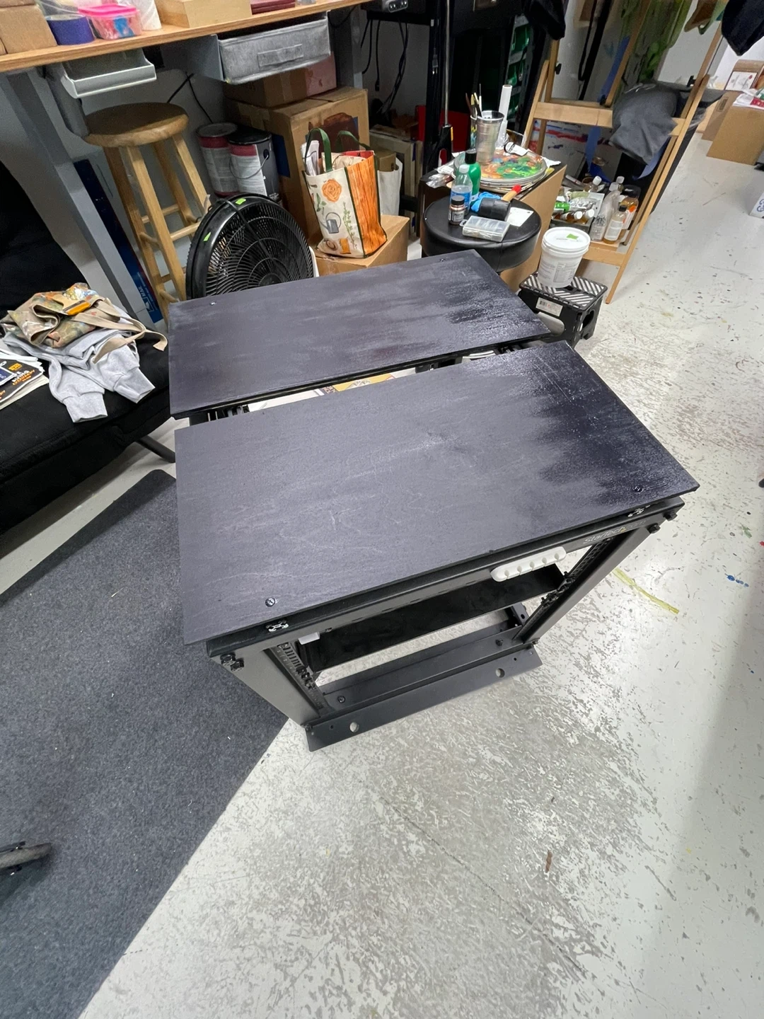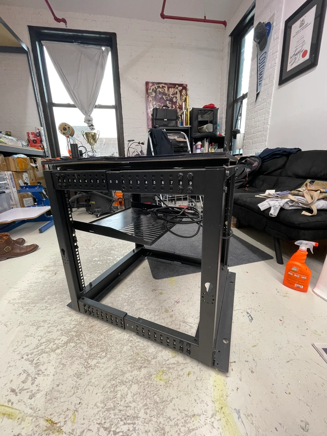 This StarTech.com server rack provides a stable, open-frame solution for mounting your network equipment. It features a durable black steel construction and includes a wooden top surface. It's great for organizing servers and other rack-mountable gear in a home or office setting.