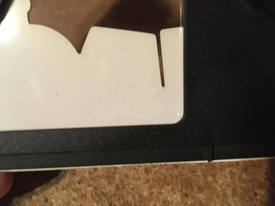 Frame has a crack on the bottom and a couple of spots where it can be hung up. Frame size is 10.5" x 7".