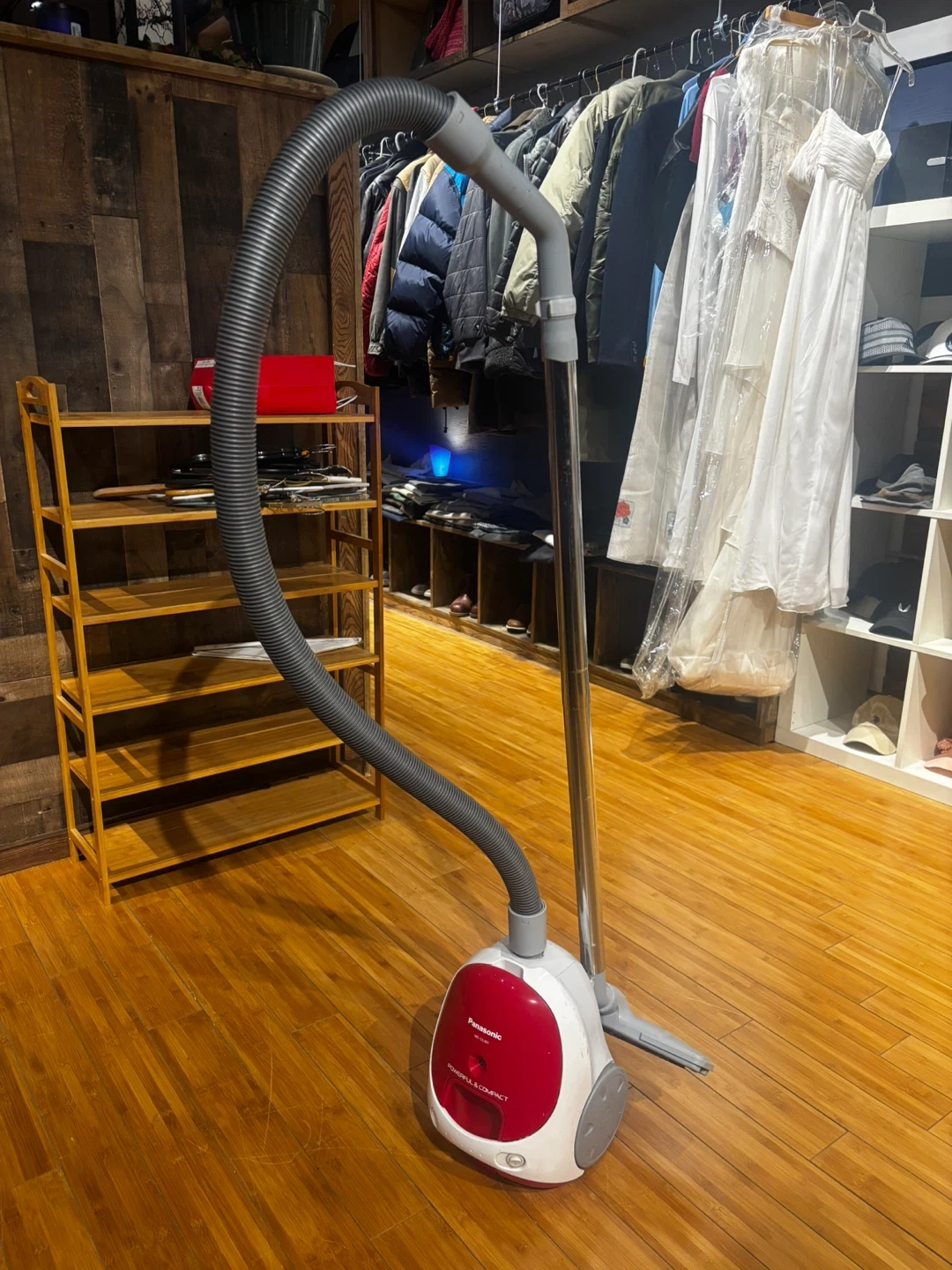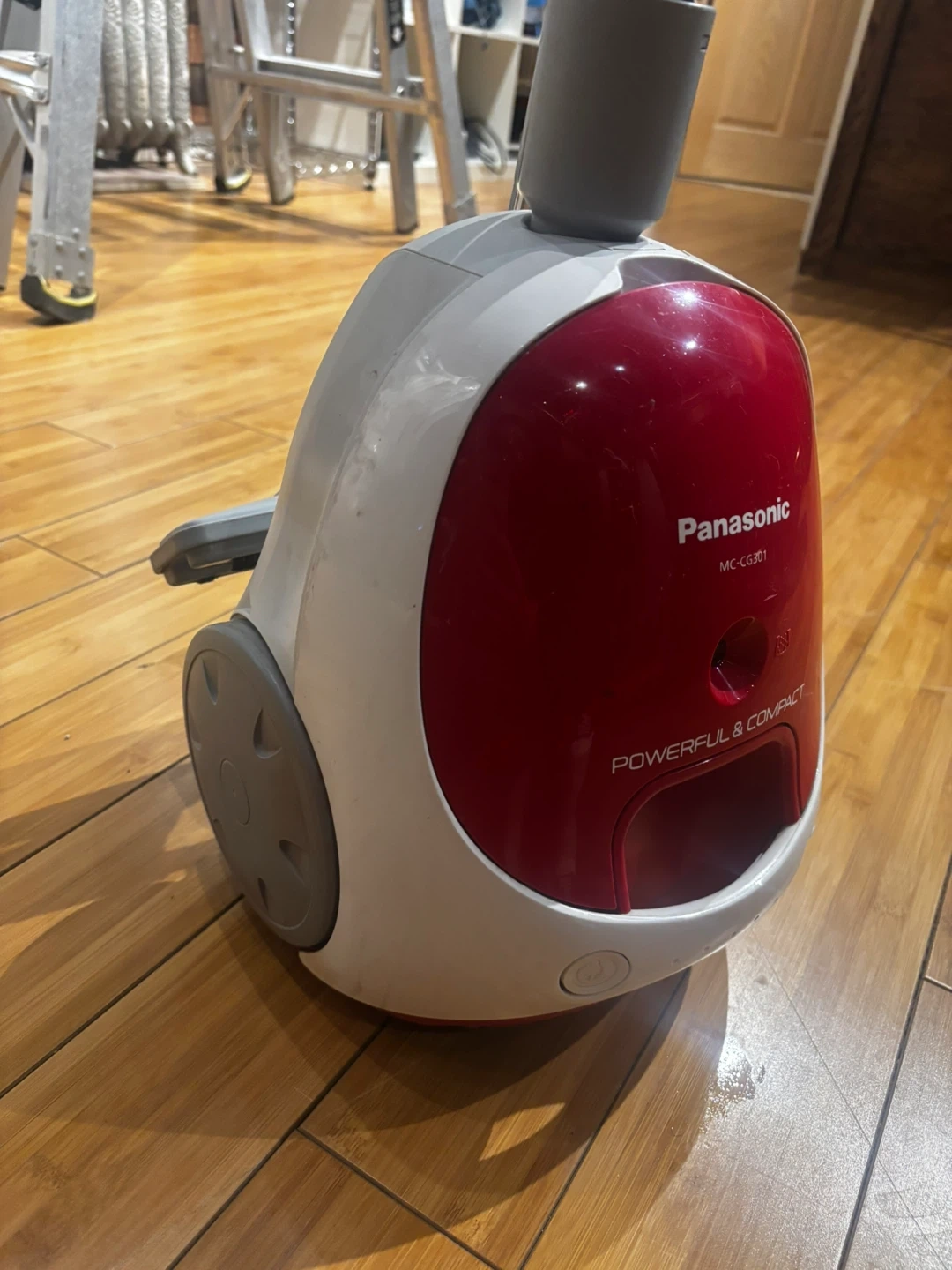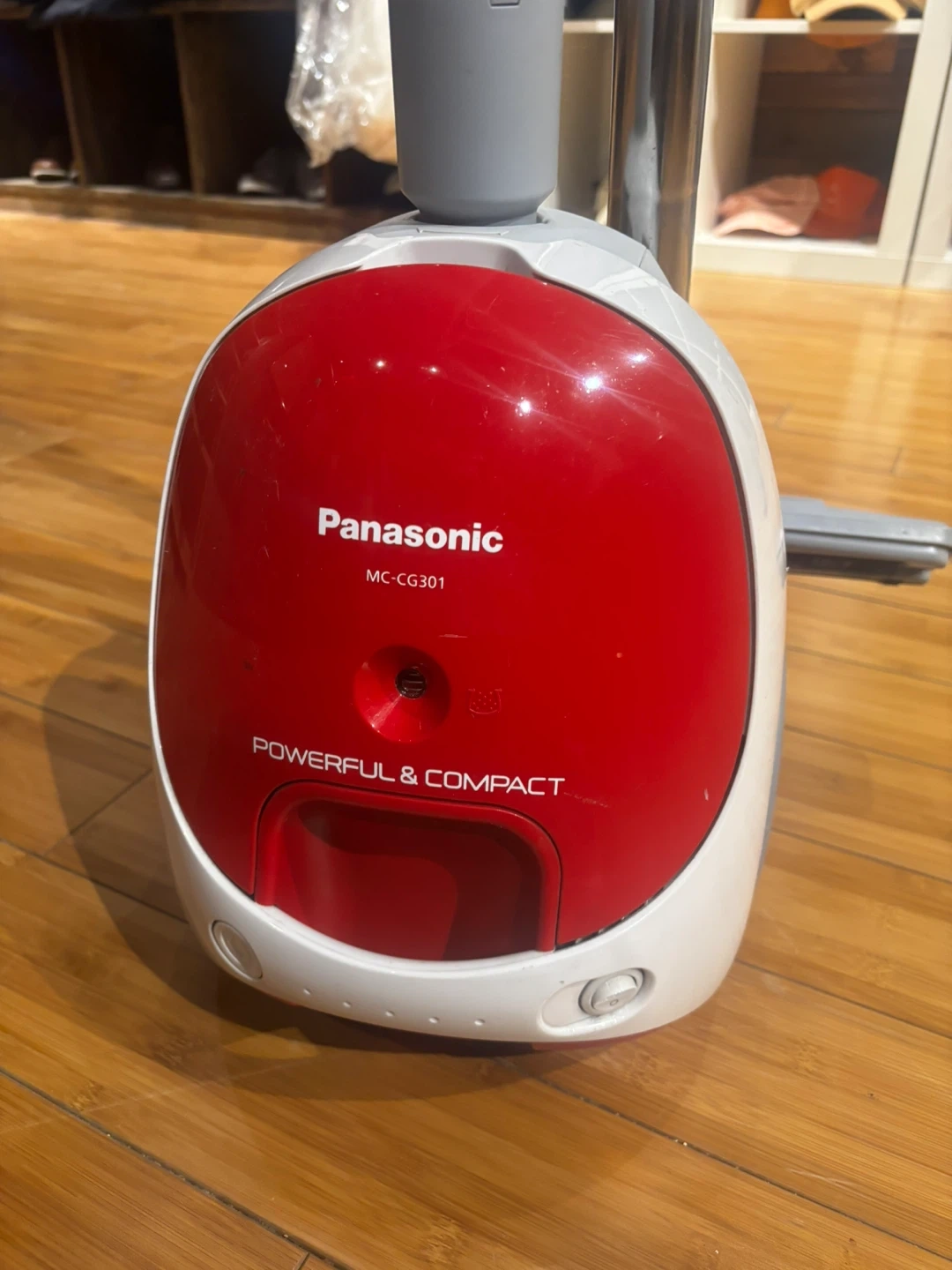 This is a Panasonic MC-CG301 compact vacuum cleaner. It's red and white. Powerful and compact design!