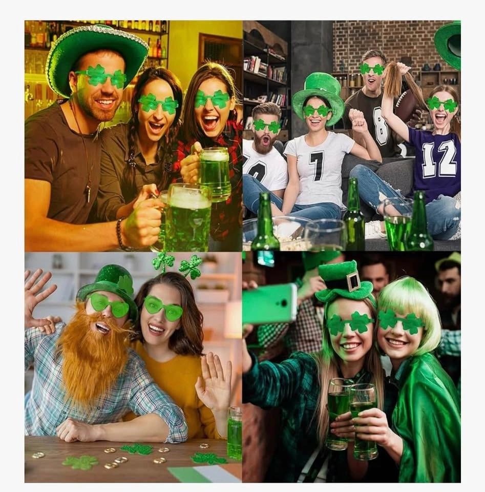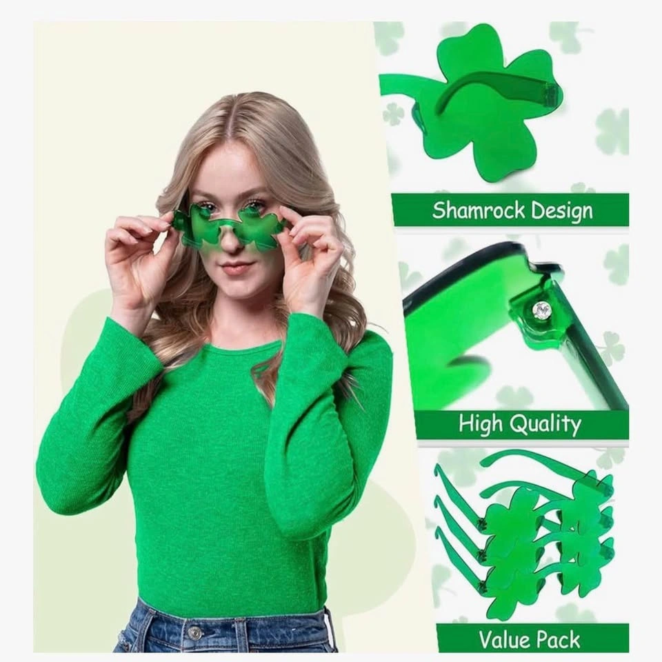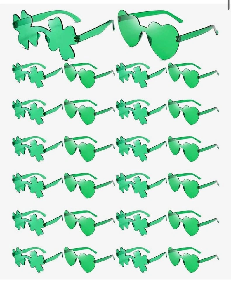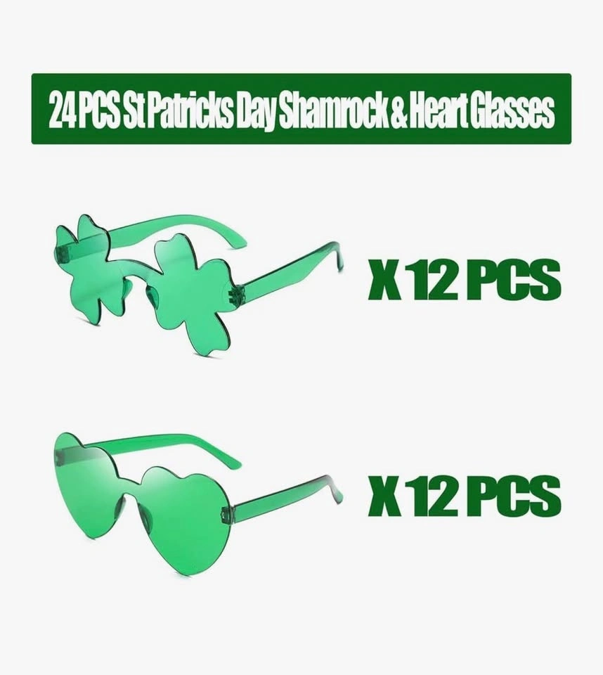 Great for St. Patrick's Day parties! This pack includes 24 pairs of shamrock-shaped sunglasses, perfect for festive decorations and party favors for women and kids. Add some clover fun to your St. Paddy's Day celebrations.