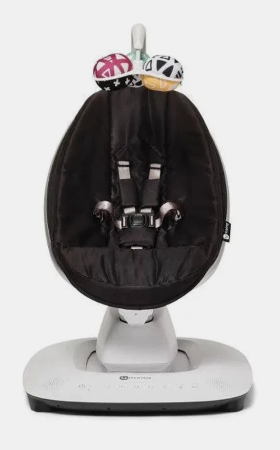 Selling a 4moms MamaRoo baby swing in black. It's in great condition and ready for a new home. This swing is designed to mimic the natural motions parents use to comfort their baby. It features multiple speeds and built-in sounds to soothe your little one!