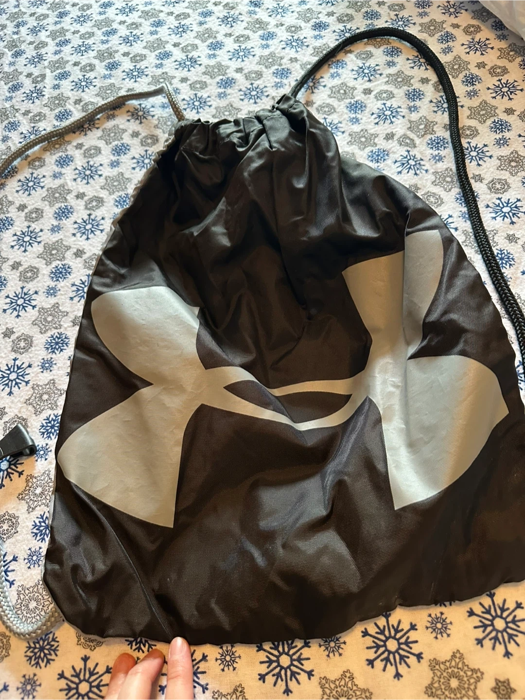 This is an Under Armour drawstring bag. It's made of durable material and features the iconic Under Armour logo. Great for gym sessions or carrying everyday essentials!