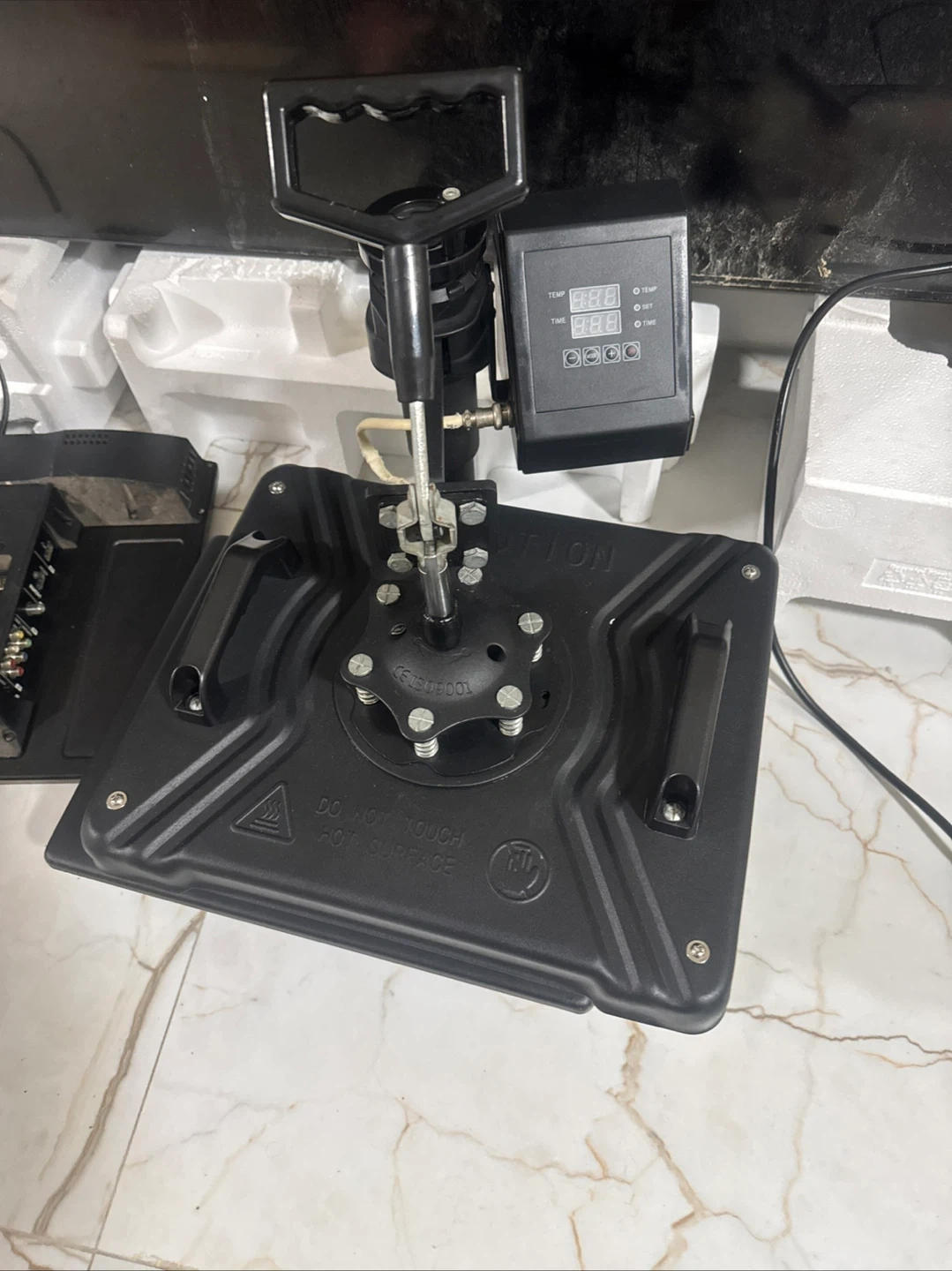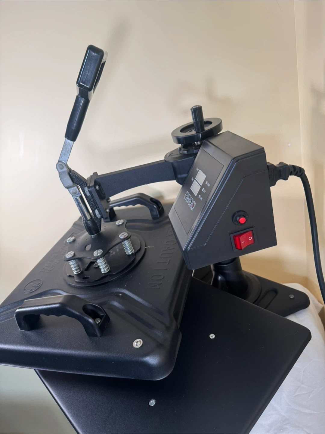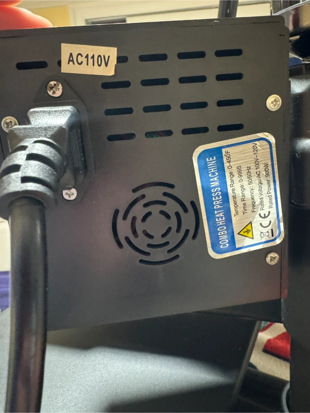 This is a COMBO HEAT PRESS MACHINE. It's rated for 900W and runs on 110V. The temperature range is 0-450°F and the timer is adjustable from 0-999 seconds. Perfect for T-shirts, hats, mugs, and plates!