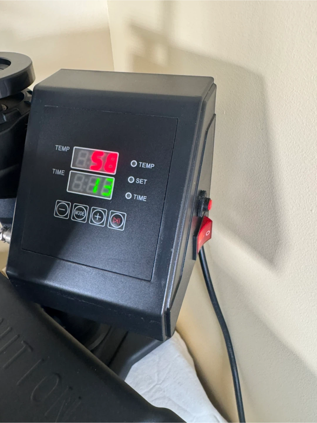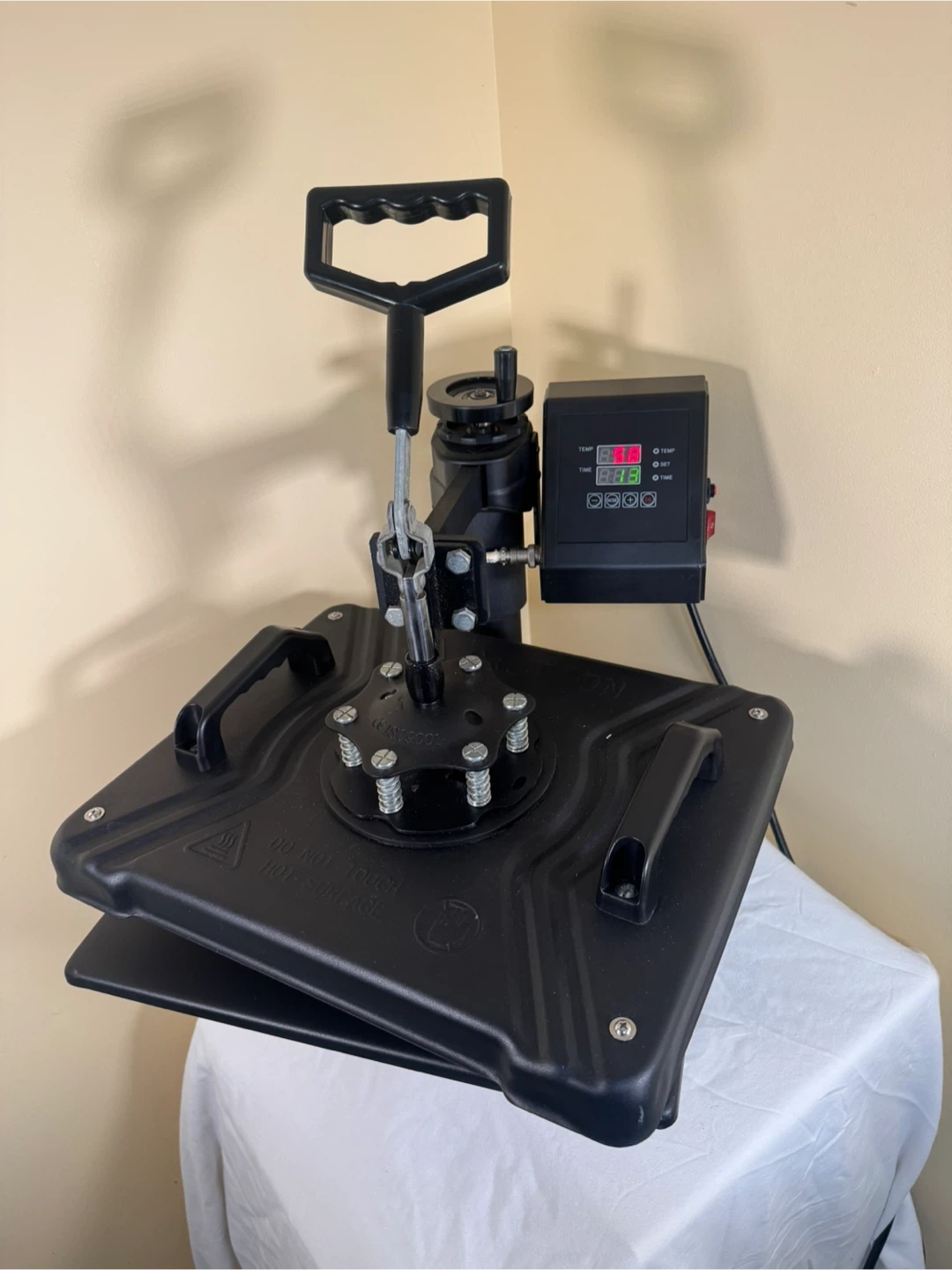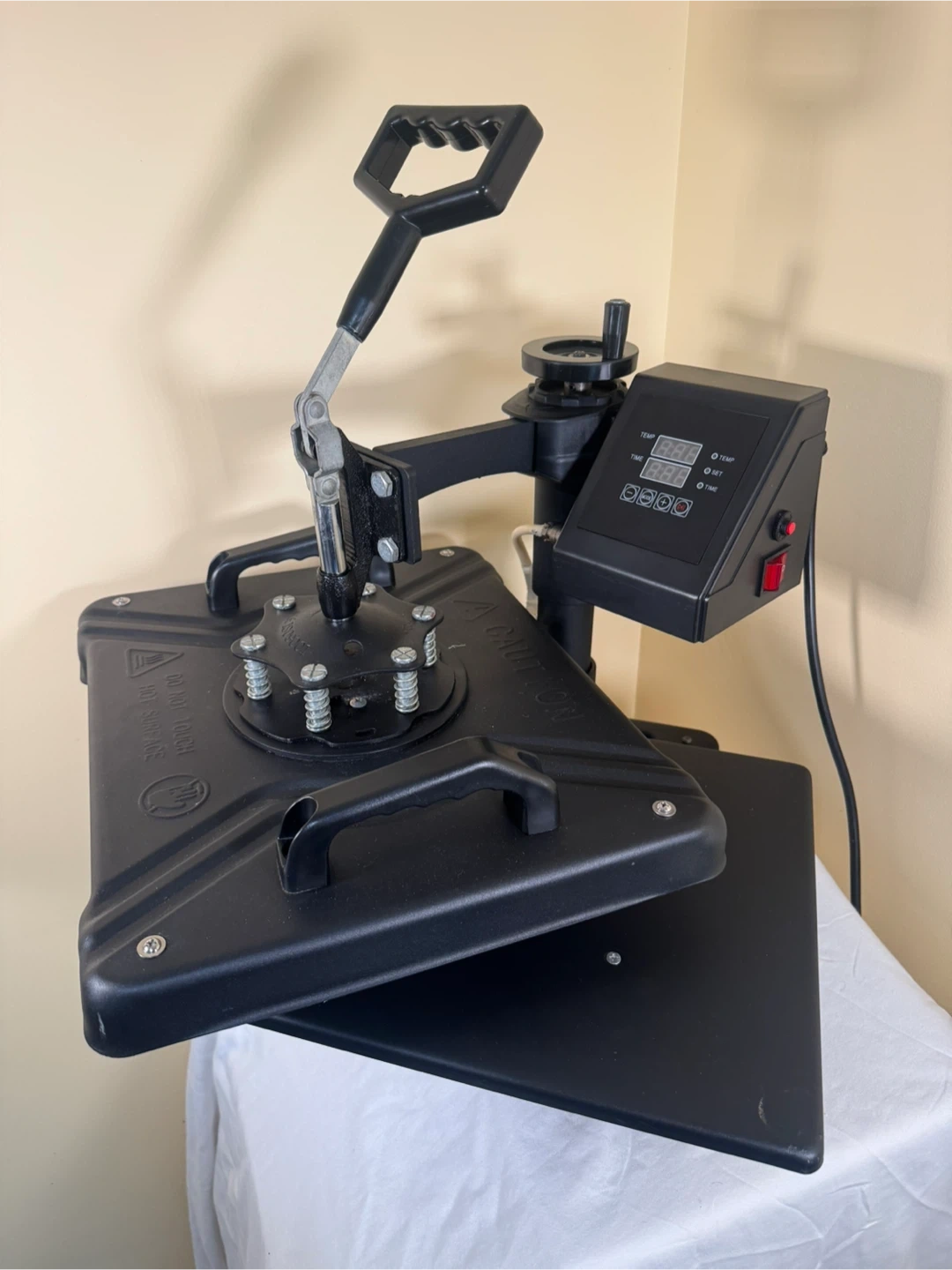This is a COMBO HEAT PRESS MACHINE. It's rated for 900W and runs on 110V. The temperature range is 0-450°F and the timer is adjustable from 0-999 seconds. Perfect for T-shirts, hats, mugs, and plates!
