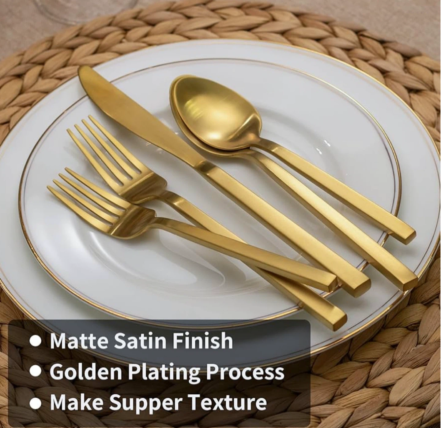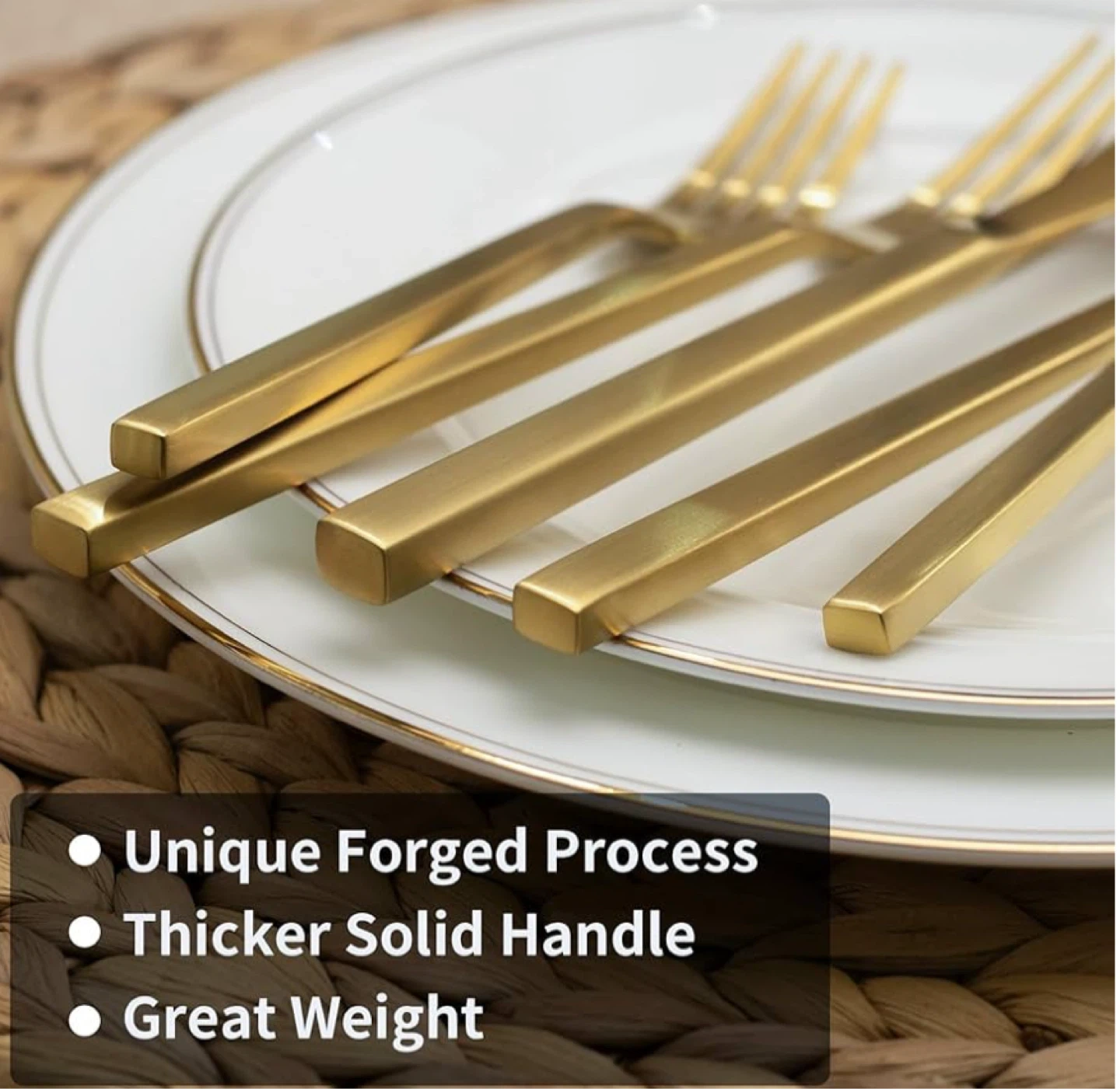Dishwasher Safe & Easy to Clean: The matte gold forged flatware set is dishwasher safe and easy to care for and clean in daily use. Crafted forged process, strong and durable, so that the flatware set has a thicker texture