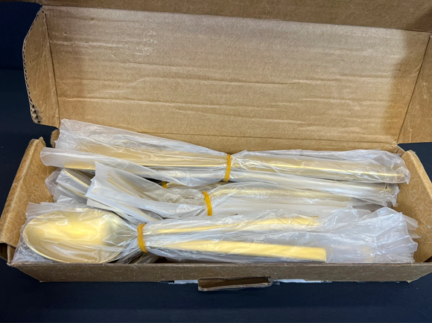 NEW. Open Box Item. It’s missing one Salad Fork.