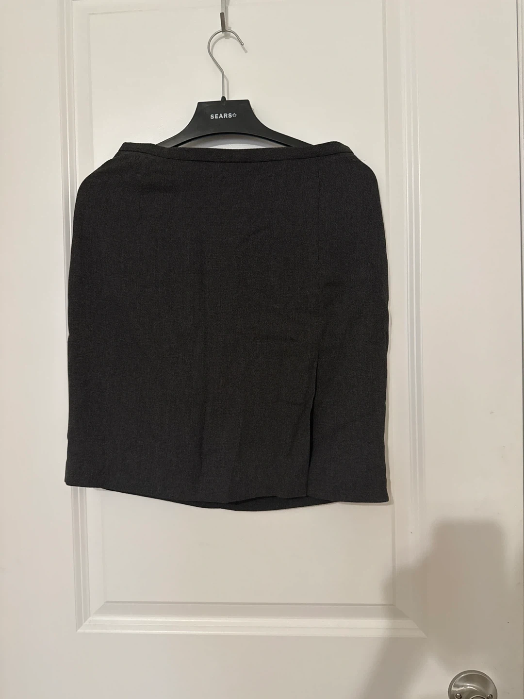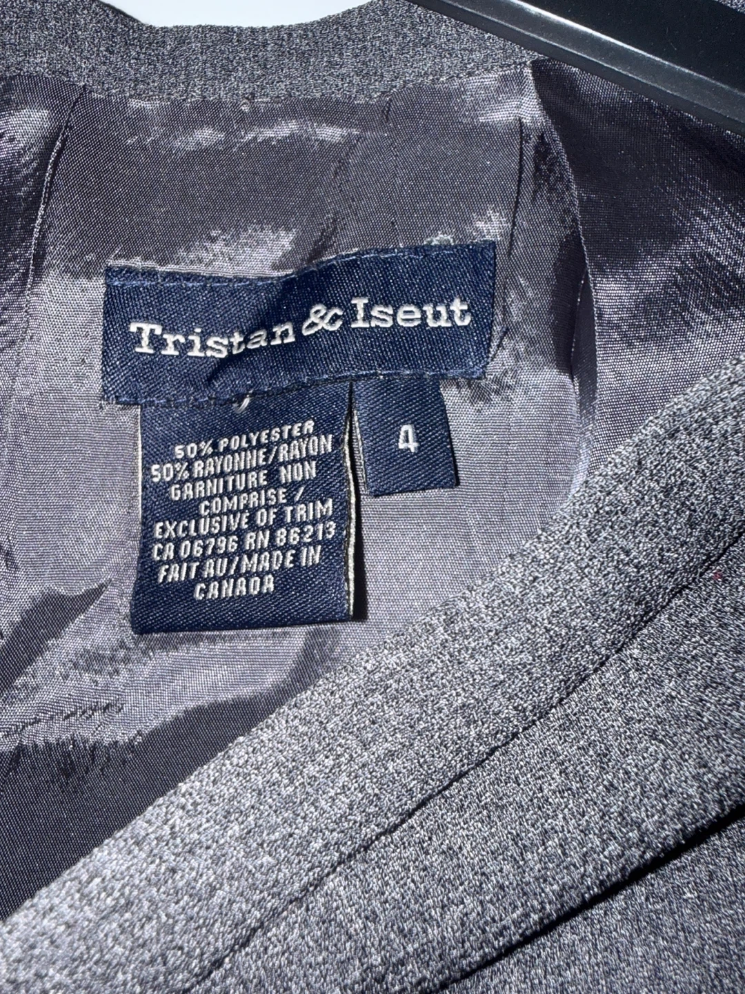 Tristan & Iseut skirt made with 50% polyester and 50% rayon. It's a size 4 and was made in Canada. This skirt features a simple, classic design.
