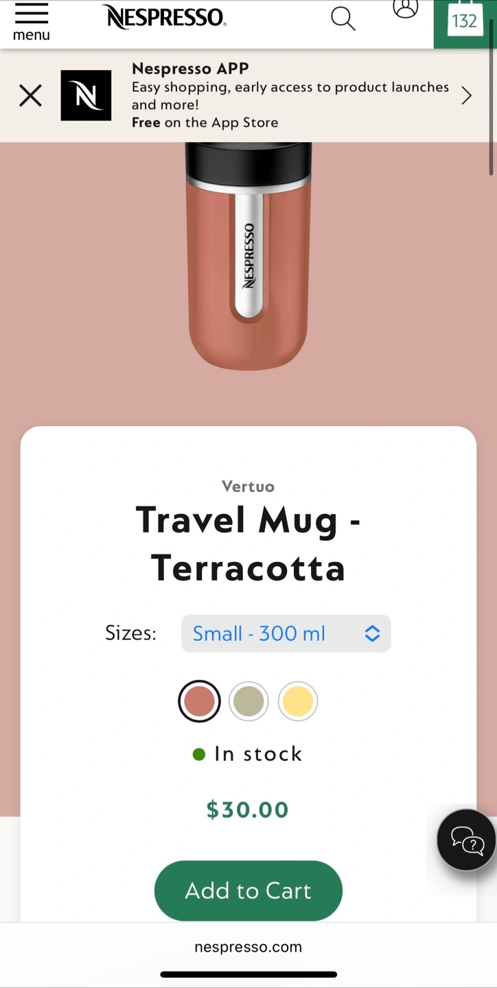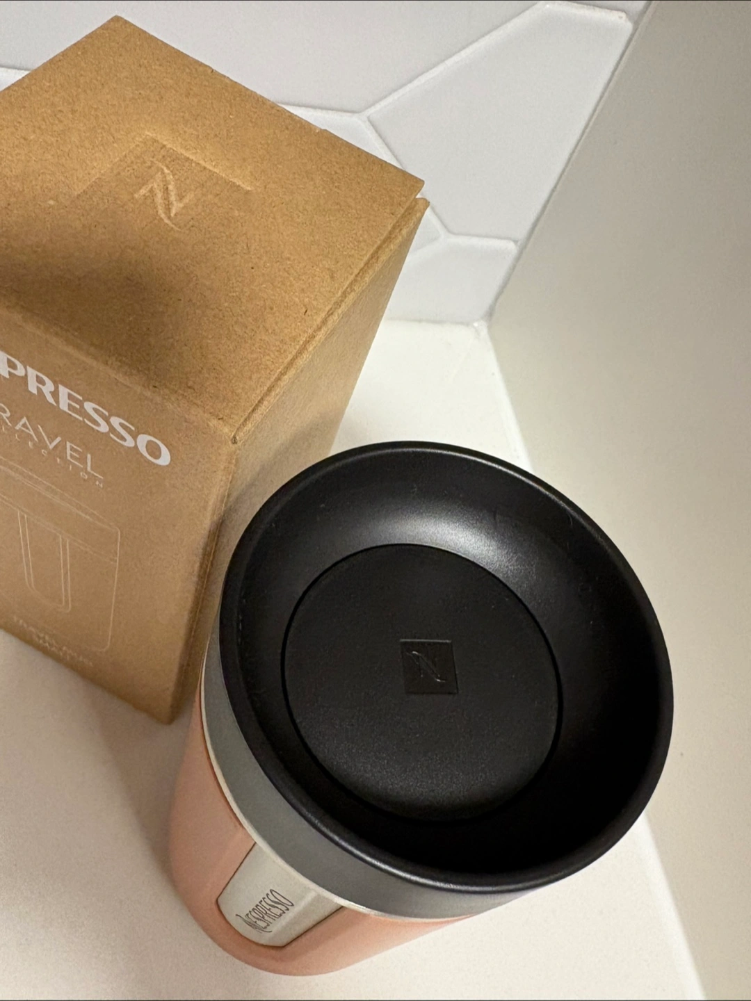 Selling a Nespresso Travel Mug in terracotta. It's the small size, holding 300 ml. The original box is included. This travel mug is perfect for keeping your coffee warm on the go.
