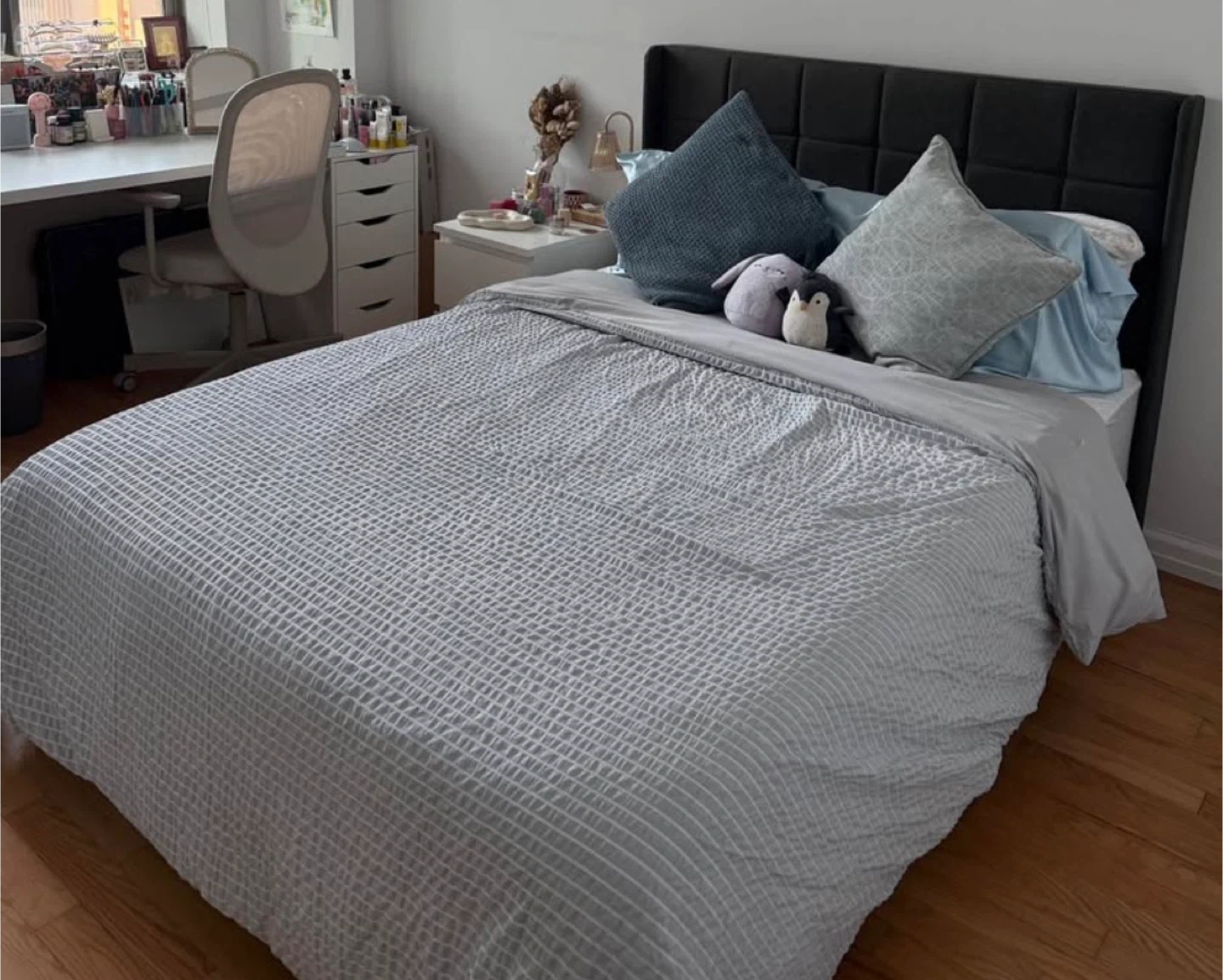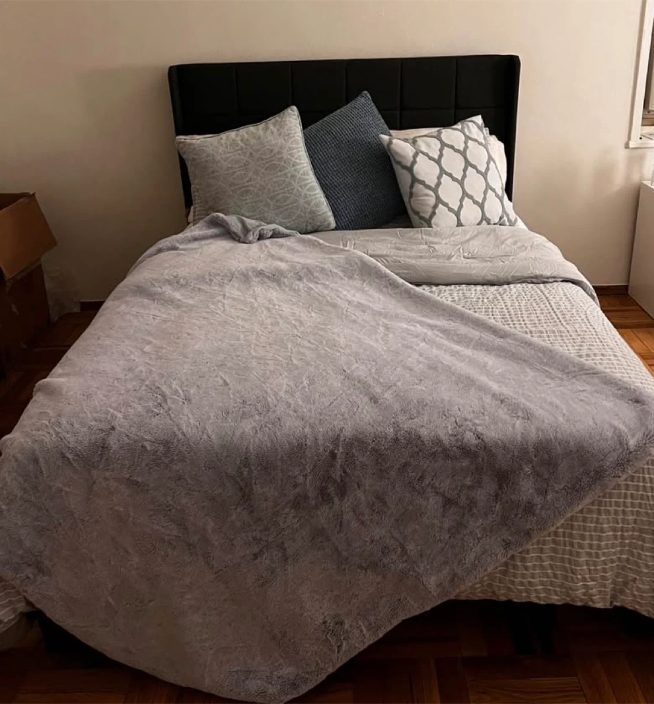 Gray Upholstered Full Bed Frame with Tufted Headboard