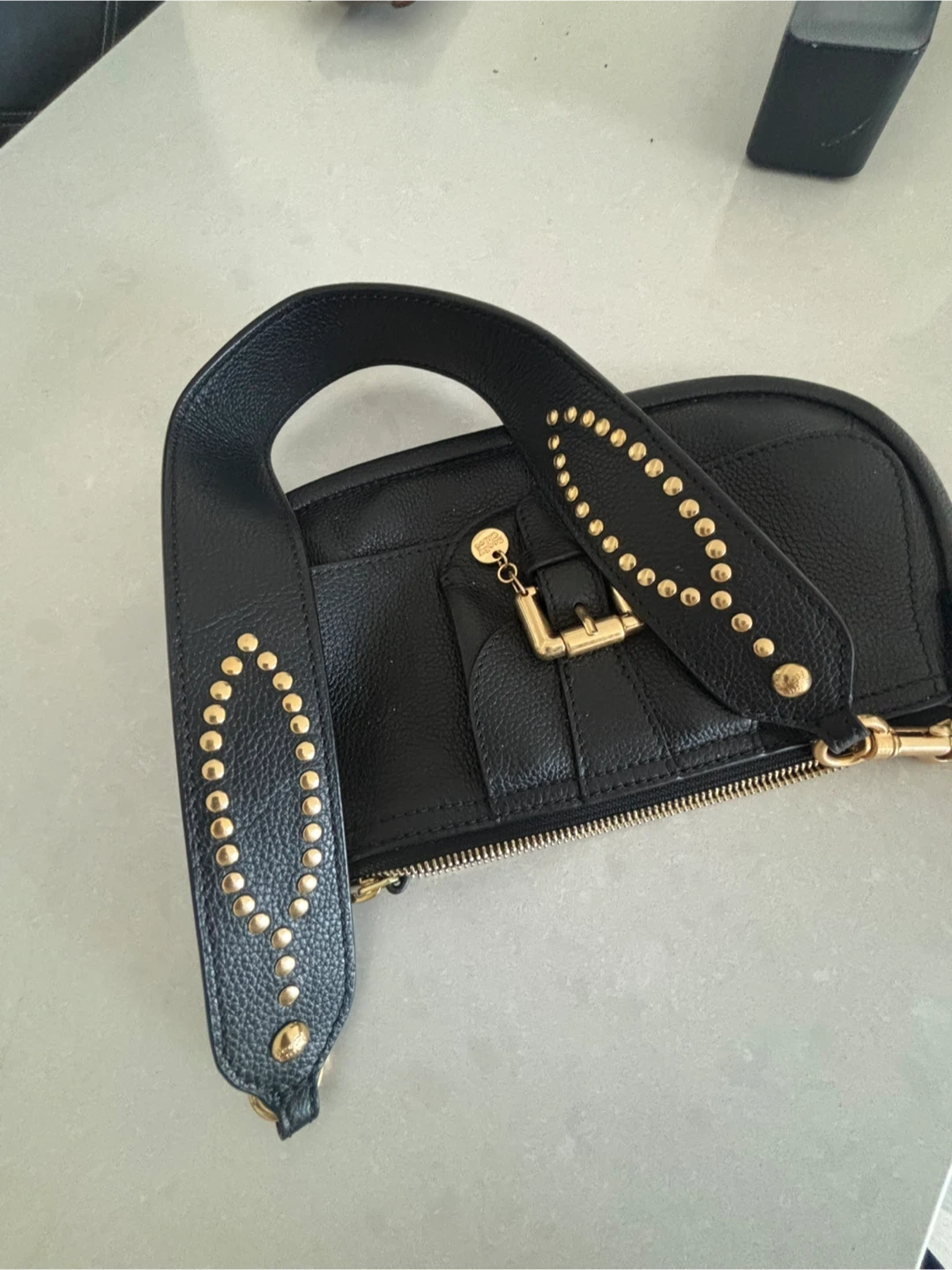 Selling a stylish See By Chloé shoulder bag in black leather. It features gold-tone hardware and a unique studded strap. Perfect for adding a touch of elegance to any outfit!